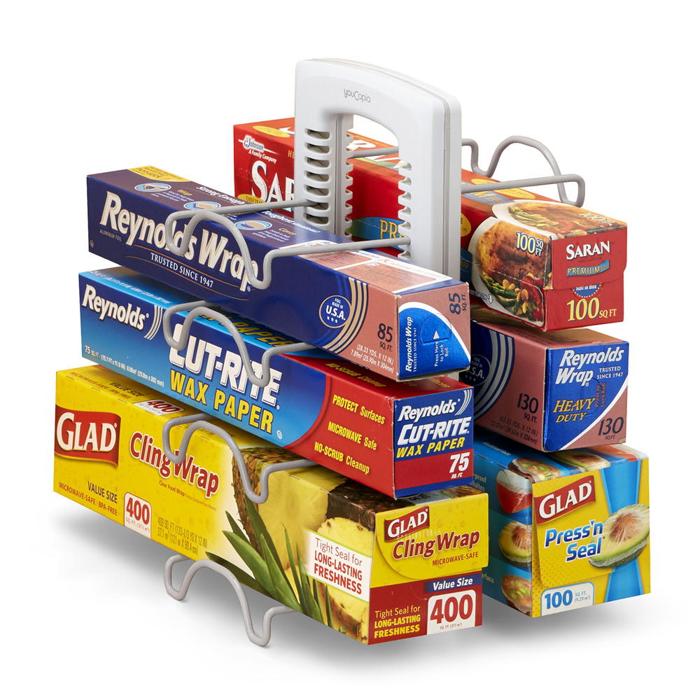 Deze keuken organizer is de oplossing voor het opbergen van folie en bakpapier. Geen rommelige lades meer, het doosje van de onderste stapel nodig hebben, of de lange doosjes bewaren op de bovenste plank: met dit keukenkast rekje zijn vershoudfolie, aluminiumfolie of bakpapier voortaan binnen handbereik opgeborgen.