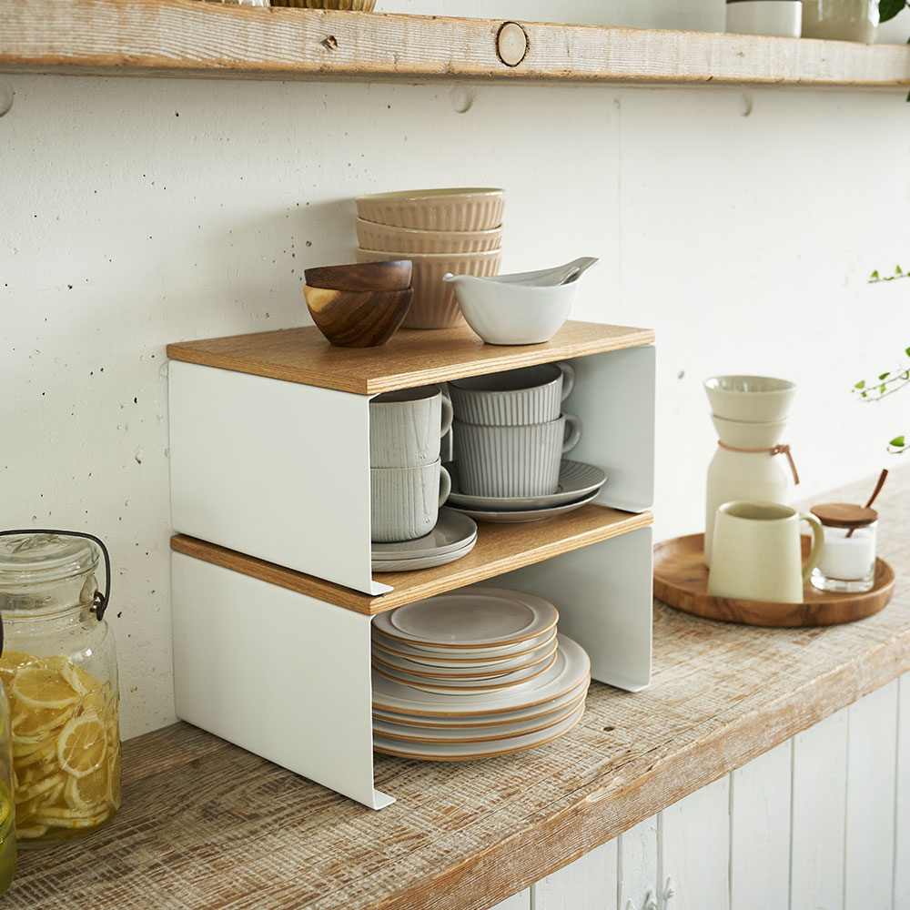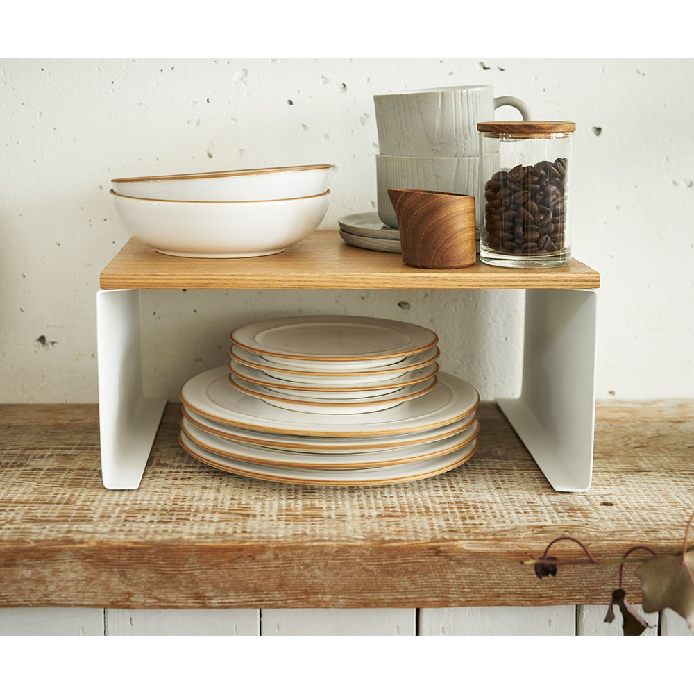 Met dit keuken plateau van Yamazaki maak je effectief gebruik van de beschikbare ruimte op je aanrecht of in je keukenkastje. Een keuken plateau is één van de beste producten om je keukenkastjes praktisch mee in te delen. Creëer één extra verdieping of stapel zelfs twee exemplaren op elkaar zodat je je mokken, glazen of borden boven elkaar kunt opbergen. Geen loze ruimte meer, maar een effectieve keukenkast of aanrecht indeling! Er zijn meer bijpassende opbergers uit de Tosca collectie om je keuken eens goed te herorganiseren.