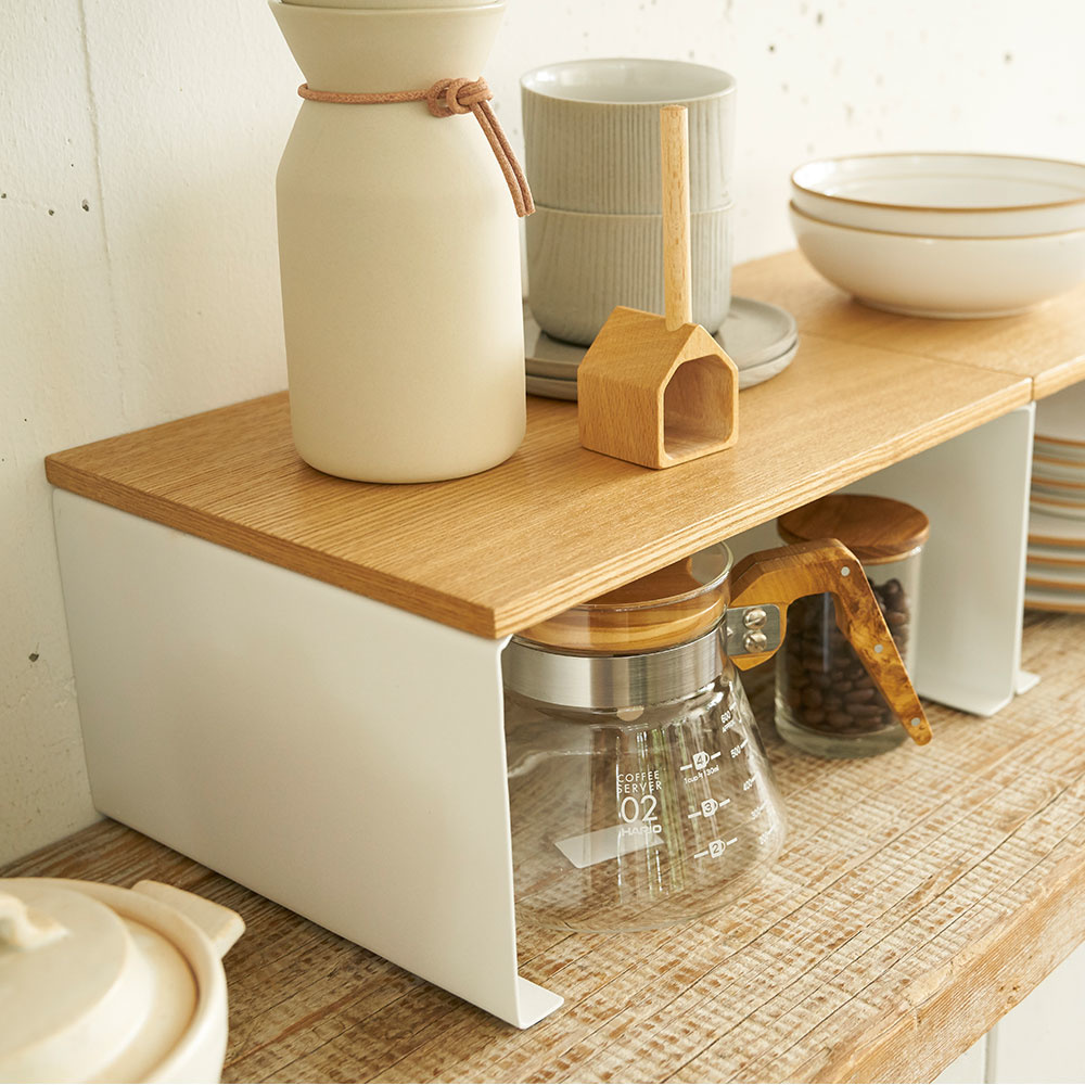 Dit keuken plateau is niet alleen prachtig maar ook functioneel. Door het plateau maak je optimaal gebruik van de hoogte en berg je je kopjes, kommetjes of borden op een slimme manier op.