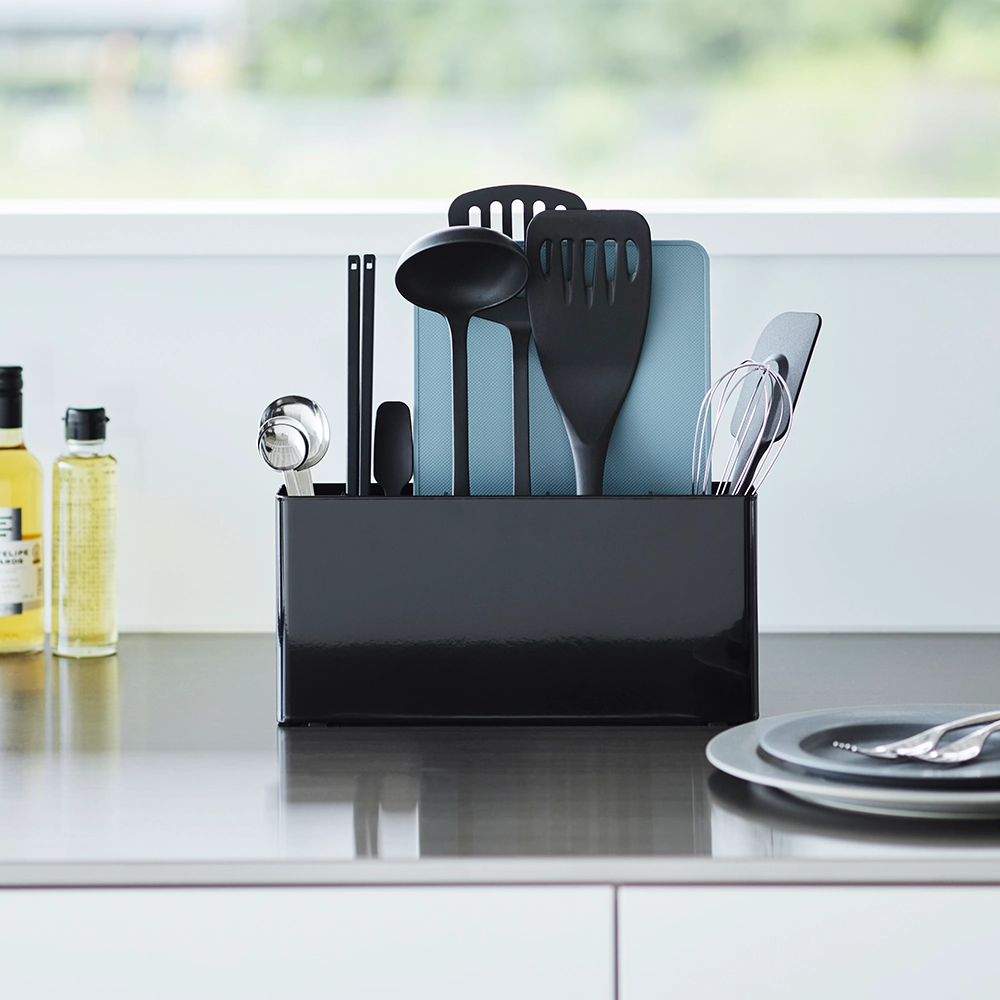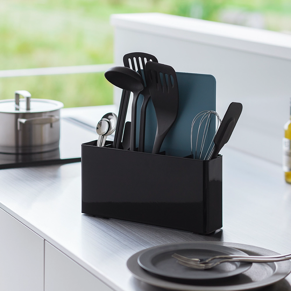 De keukengereihouder met verdeelvakken van Yamazaki is de perfecte metgezel voor al je culinaire avonturen. Of je nu een ervaren chef-kok bent of af en toe kookt, deze houder zorgt ervoor dat al je essentiële keukengerei en snijplanken netjes op één plek blijven.