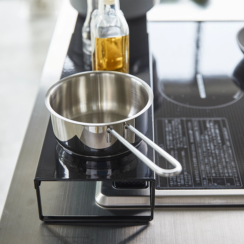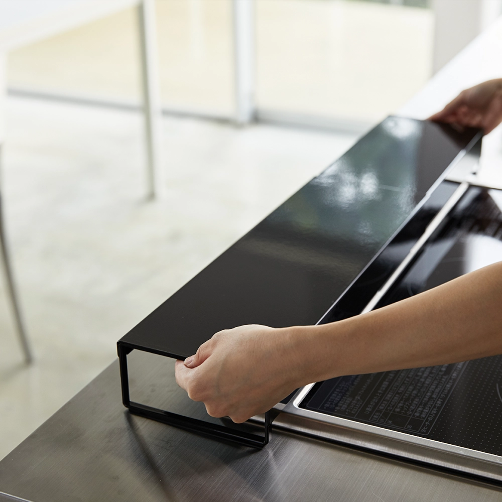 Het uitschuifbare keukenrek voor over het gasfornuis van Yamazaki biedt een slimme oplossing om je keukenruimte optimaal te benutten en te beschermen tegen spetters en etensresten. Dit keukenrek is ontworpen om boven het gasfornuis te plaatsen, waar het fungeert als een beschermende wand tegen olie- en kookspetters, en tegelijkertijd als een handige plek om potten, pannen, kruiden, en oliën neer te zetten.