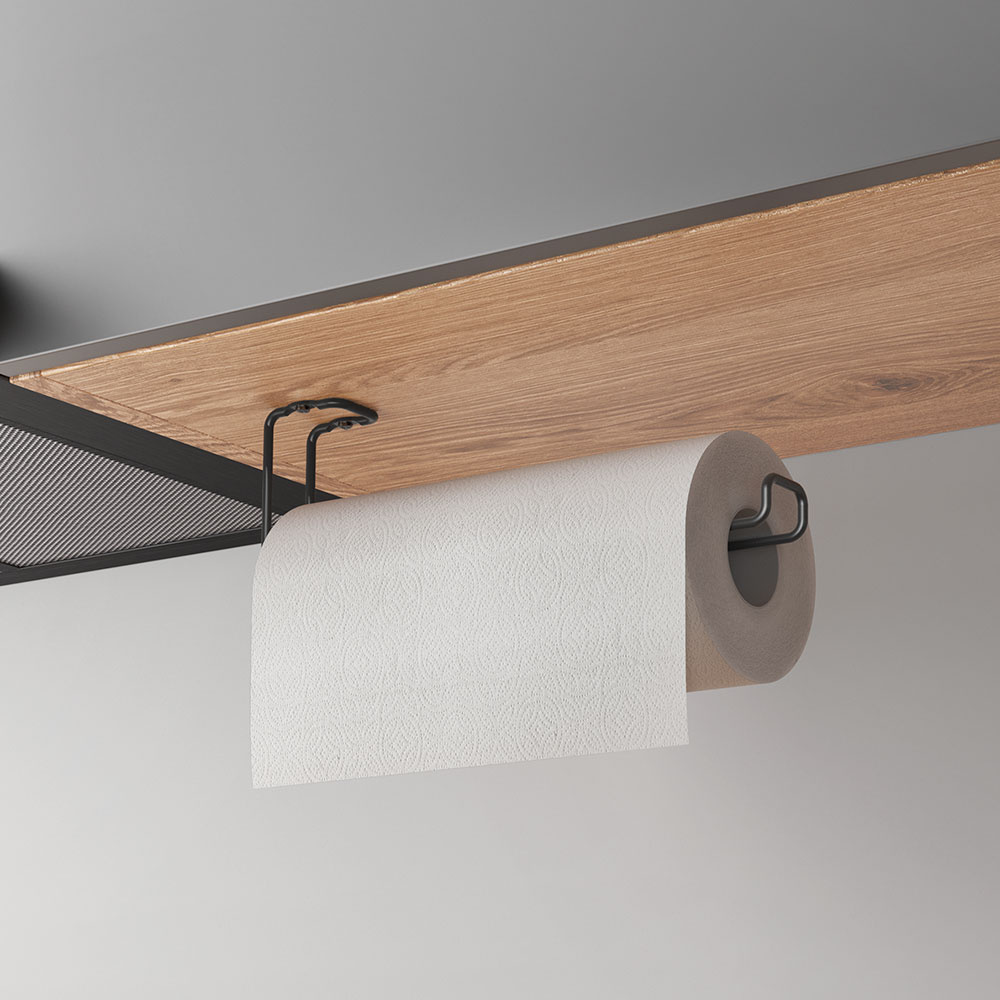 Met deze zwarte keukenrolhouder hangend voor onder of aan de zijkant van je keukenkastje, heb je altijd je keukenpapier bij de hand. In een stijlvol matzwart design.