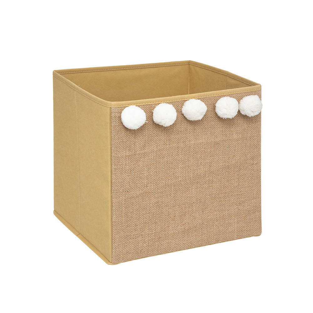 Deze opbergmand voor in de kinderkamer is gemaakt van karton en polypropyleen kunststof. Deze kindermand is inklapbaar en heeft de afmetingen van 29 cm breed, 29 cm diep en 29 cm hoog. De mand past precies in een kubus kasten qua formaat.