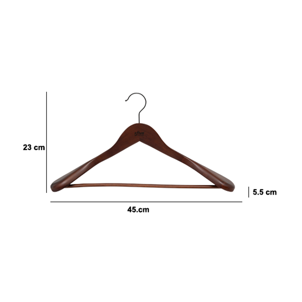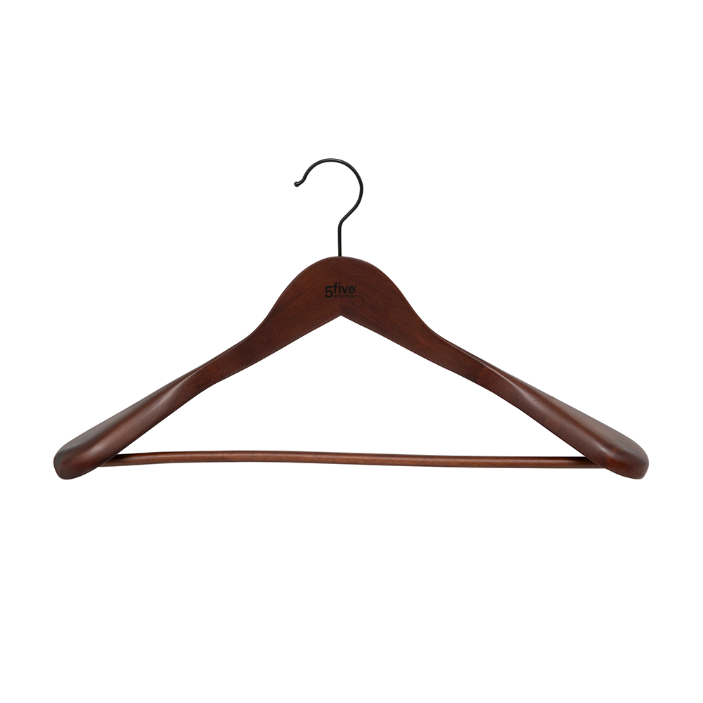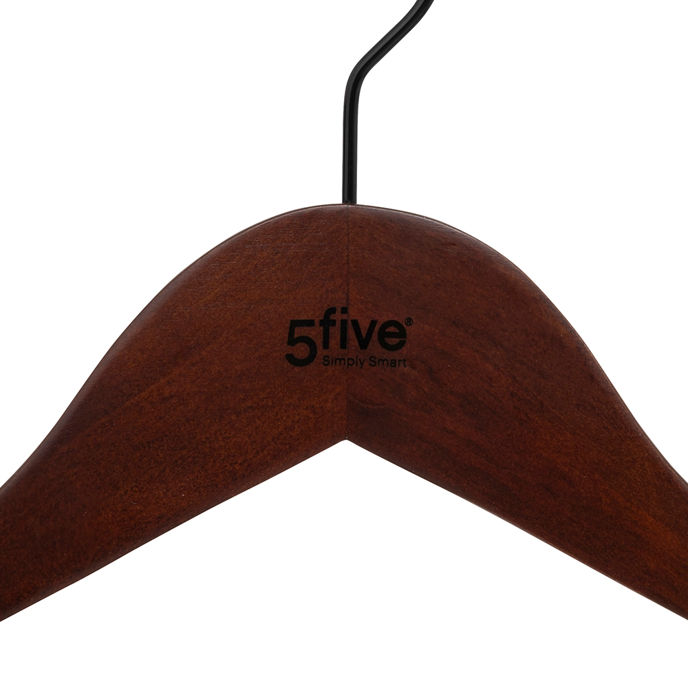 De houten kledinghanger van Five® is de perfecte keuze voor het netjes en kreukvrij ophangen van je kleding. Met zijn brede schouders biedt deze hanger optimale ondersteuning voor zware kledingstukken zoals jassen, colberts, blazers en mantels.