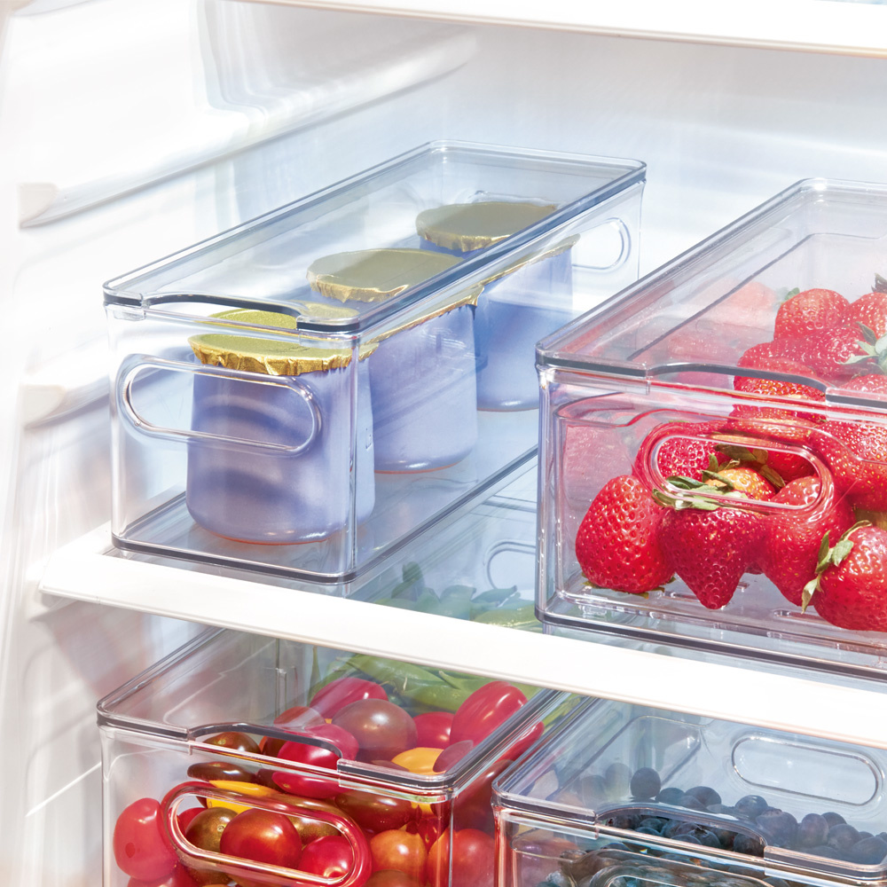 De koelkast bakken met deksel van The Home Edit brengen orde in jouw koelkast. De bakken zijn stapelbaar en zijn beschikbaar in verschillende maten.