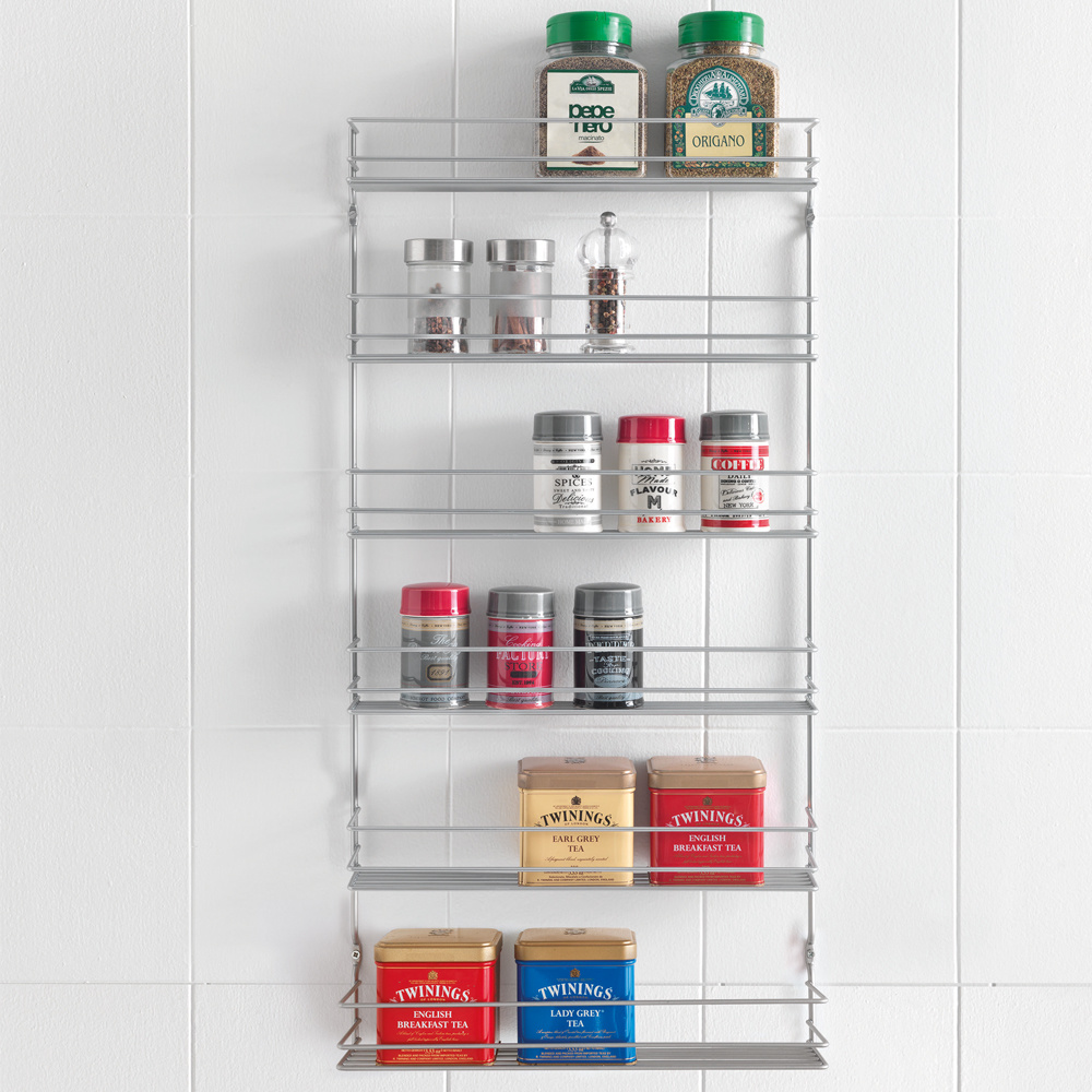 Dit kruidenrek voor in de keuken is gemaakt van roestbestendig metaal. Het is de ideale opberger voor in de keuken doordat het weinig ruimte in beslag neemt. Het keukenrek is beschikbaar in 5 verschillende formaten en is direct klaar voor gebruik. Het Metaltex kruidenrek is gemakkelijk aan de muur of binnenkant van de deur te bevestigen.