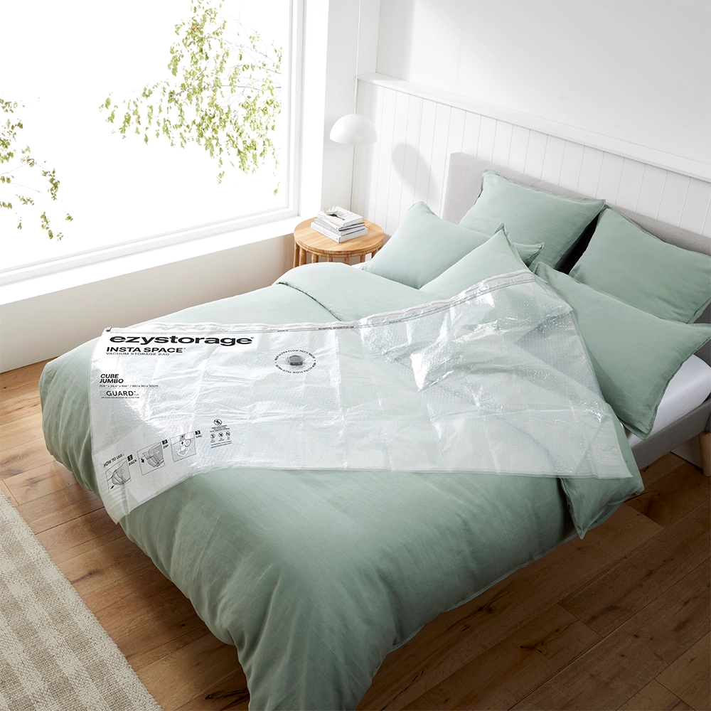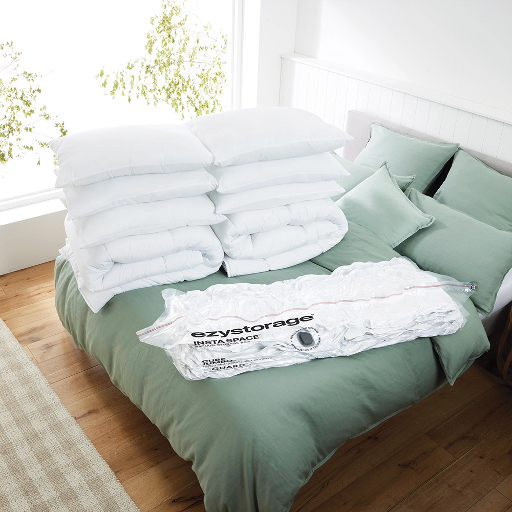 Zoek je een slimme manier om maarliefst 75% ruimte te besparen en je dekbedden op een praktische wijze op te bergen? Ontdek de kracht van onze vacuümzak voor dekbedden uit onze Insta Space collectie.