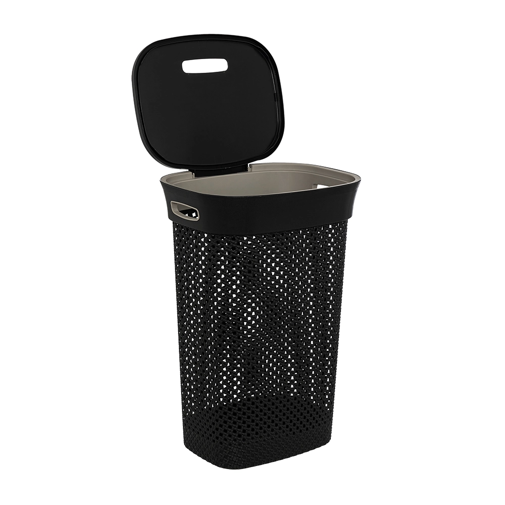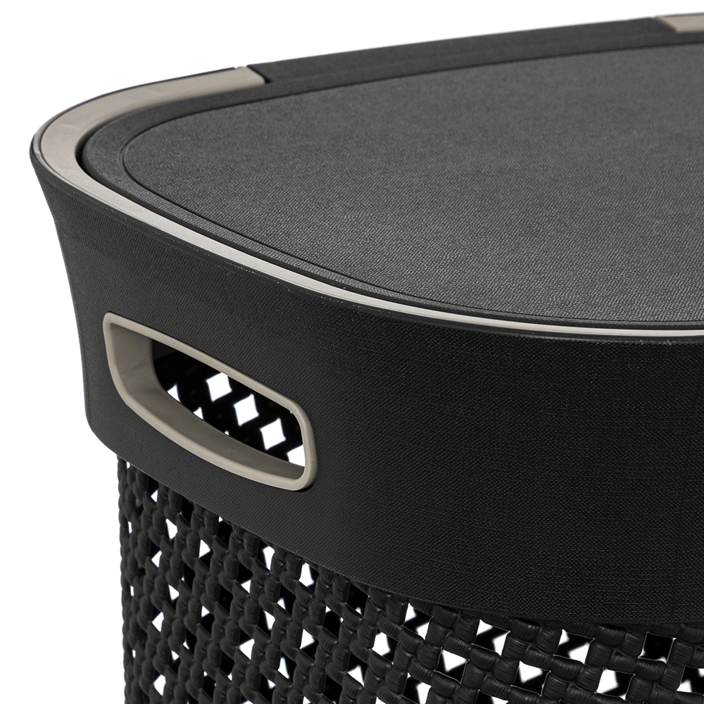 De buitenzijde is donkergrijs, terwijl de binnenkant subtiele lichtgrijze details heeft, wat zorgt voor een moderne uitstraling. Gemaakt van hoogwaardig PP kunststof, is deze wasmand van 60 liter niet alleen stevig, maar ook licht van gewicht. Met een gewicht van slechts 1,3 kg en handige handvatten is de wasmand eenvoudig te verplaatsen, zelfs als hij vol zit met wasgoed. De kleine luchtgaatjes aan de zijkanten zorgen ervoor dat het wasgoed goed geventileerd blijft, waardoor nare geurtjes en schimmelvorming worden voorkomen. Bovendien is de wasmand voorzien van een deksel, wat zorgt voor een nette uitstraling en voorkomt dat het wasgoed in het zicht ligt.
