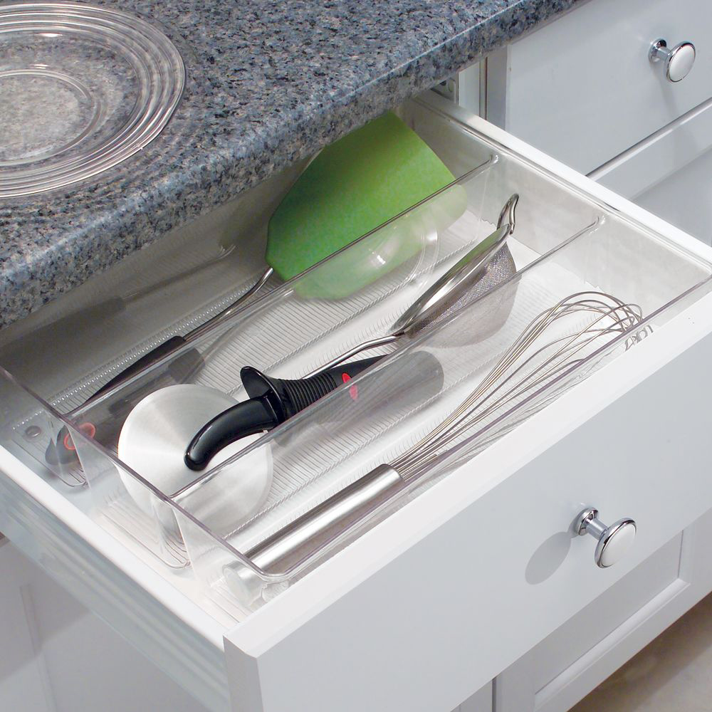 Handige transparante ladebakken van iDesign. Organiseer je lade in de badkamer, keuken of slaapkamer gemakkelijk met deze transparante bakjes.