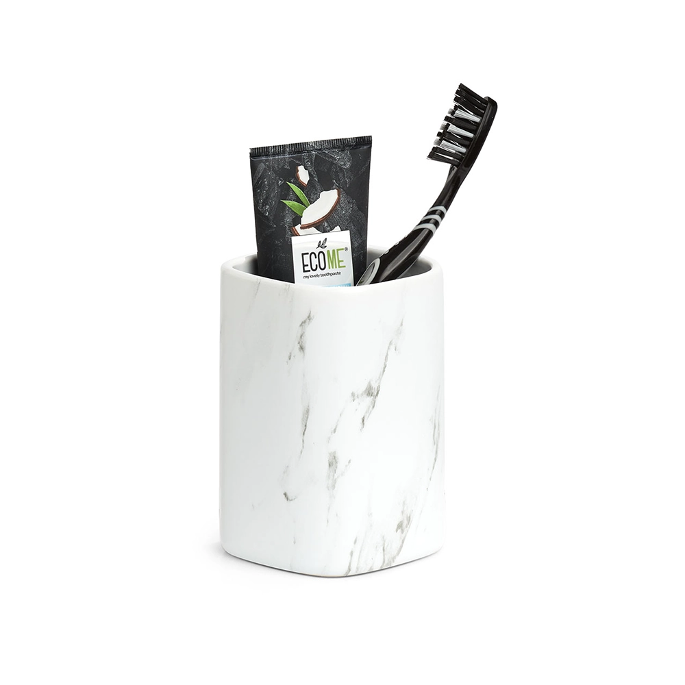 De marmer tandenborstelbeker combineert een prachtig klassiek ontwerp met een moderne twist. Met zijn elegante marmeren uitstraling voegt deze tandenborstelhouder een vleugje stijl toe aan je badkamer.