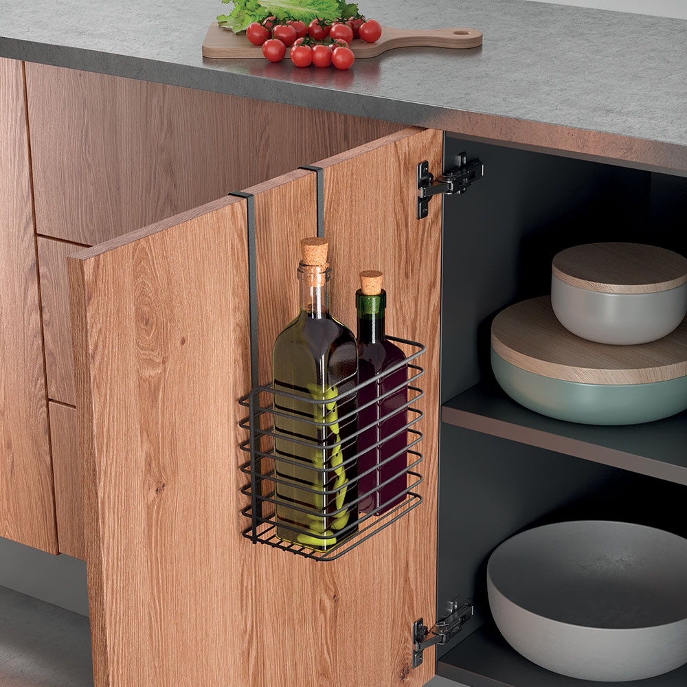 Deze matzwarte hangmand hang je eenvoudig op aan een keukenkast deurtje, zonder te boren! Met dit keukenkast rekje berg je o.a. je schoonmaakflessen, plastic tasjes, kruiden of andere keuken accessoires op.