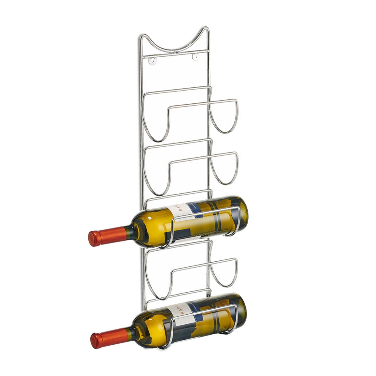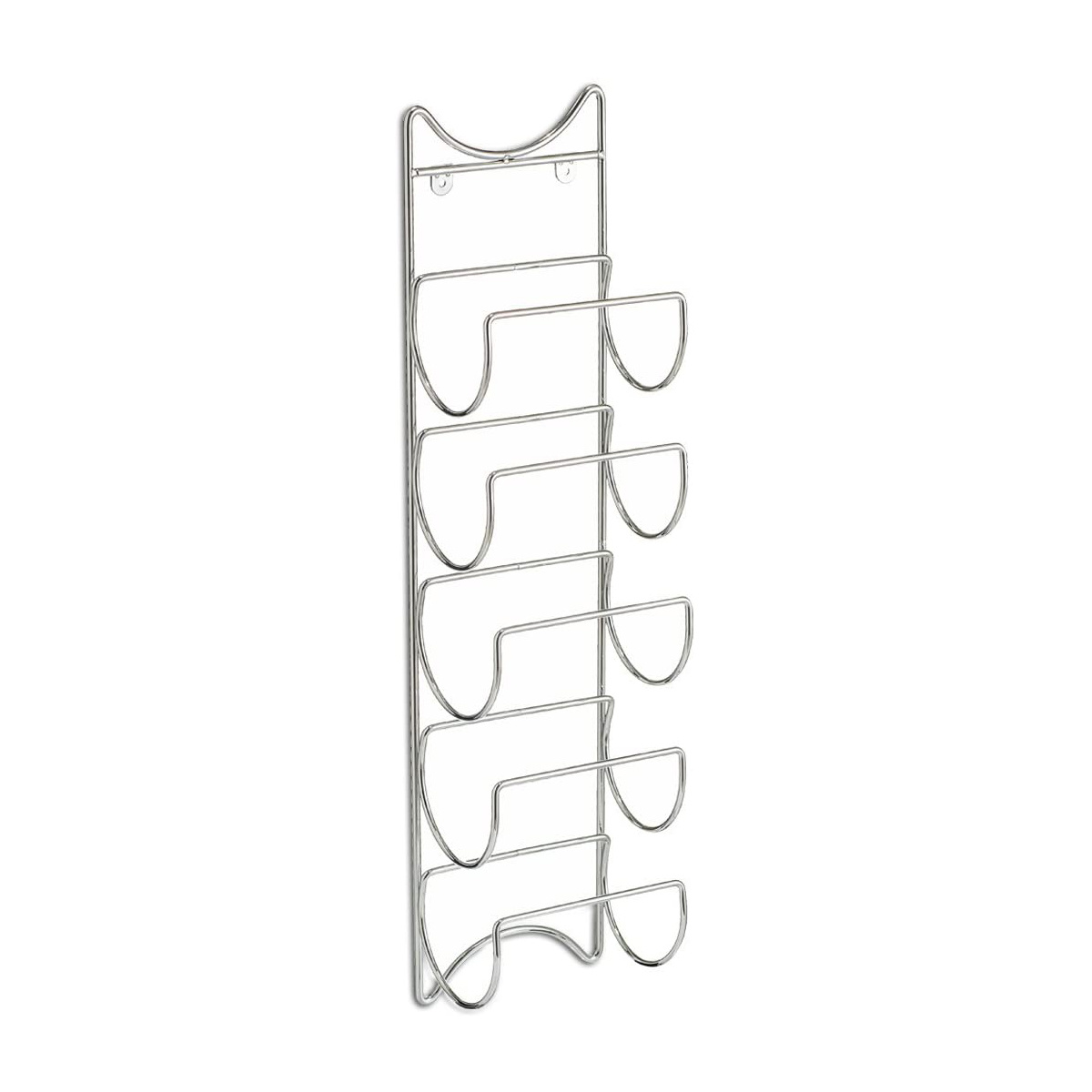 Het metalen wijnrek voor aan de muur biedt een slimme opbergruimte voor maximaal 5 wijnflessen. Het is eenvoudig te monteren en kan bevestigd worden aan een muur in de keuken, maar bijvoorbeeld ook in de woonkamer. Zo zie je in één oogopslag welke flessen je nog in huis hebt.