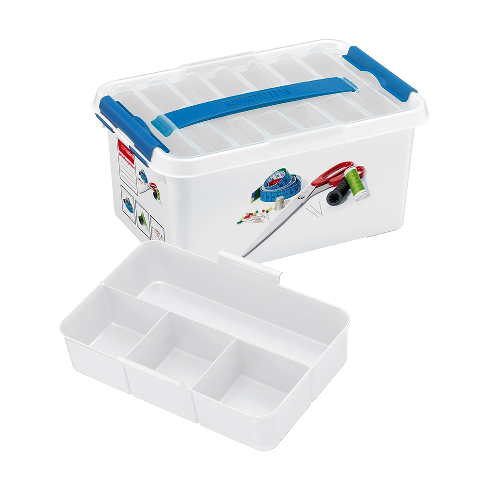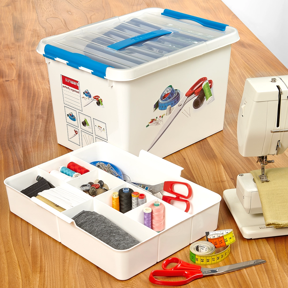 De naaibox van Sunware uit de Q-line serie is de perfecte opbergoplossing voor al je naaispullen. Deze naaidoos is verkrijgbaar in twee maten (6L en 22L), biedt deze BPA-vrije naaidoos een stijlvolle en praktische manier om al je benodigdheden te organiseren.
