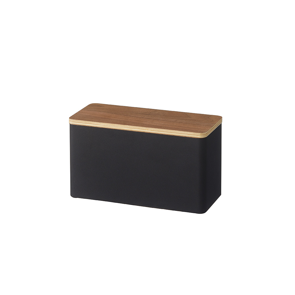Dit make-up bakje is gemaakt van zwart staal en heeft een donker houten deksel. Het opbergbakje voor de badkamer is 23 cm breed, 10,5 cm diep en 14 cm hoog en heeft een verdeelschotje om spulletjes gescheiden te houden.