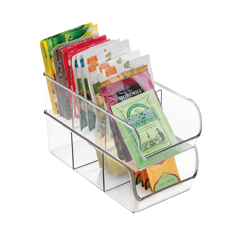 Met deze opbergbakjes schep jij orde in de chaos van jouw kasten. Het is een echte alleskunner, want je kan er van alles in kwijt van keukengerei tot knutselspullen en andere kleine accessoires. Het bakje met vakken heeft twee of drie compartimenten en een open ontwerp met verlaagde voorkant. Dit zorgt er voor dat de producten altijd zichtbaar én makkelijk bereikbaar zijn.