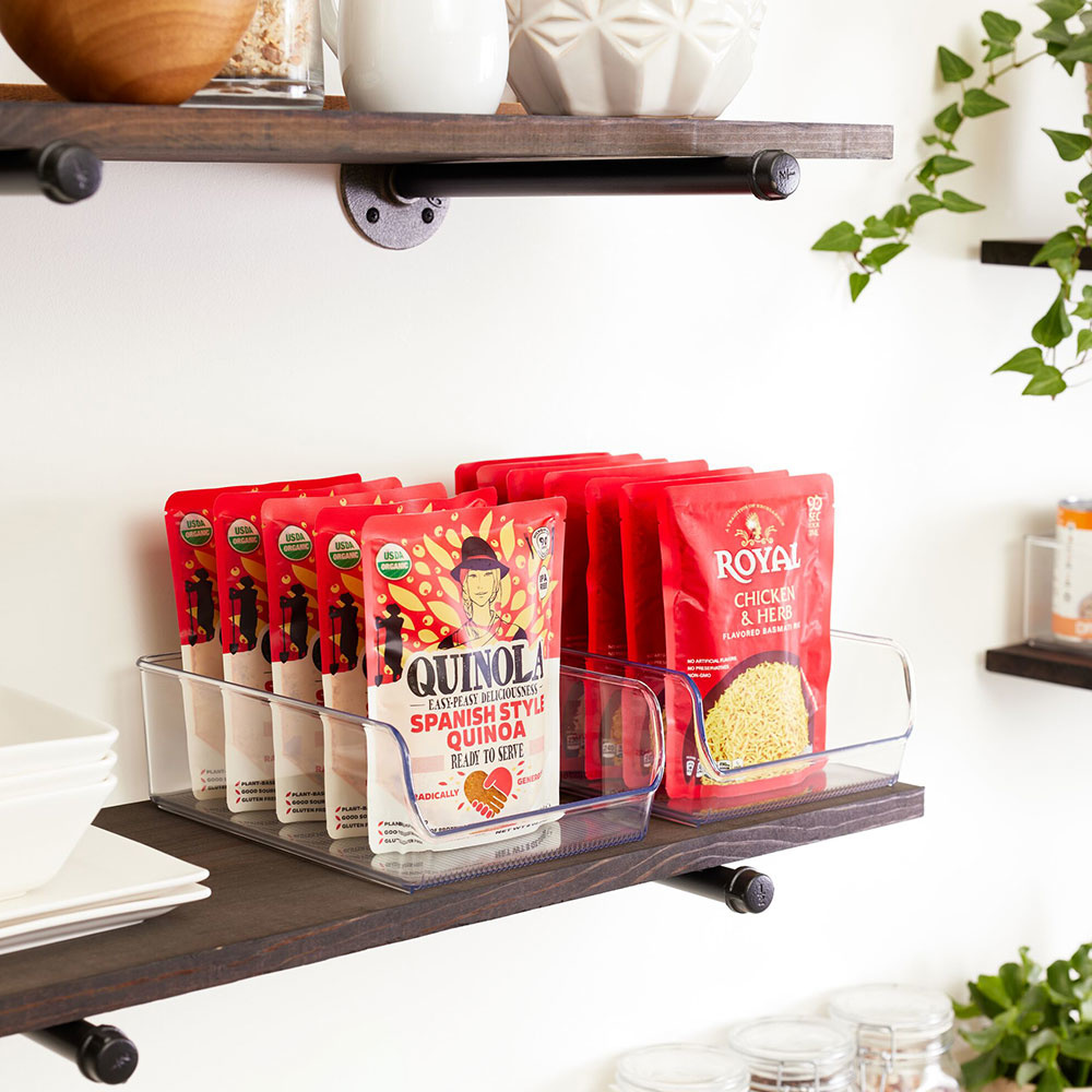 Deze opbergbakjes van iDesign zijn geschikt voor het bewaren van diverse etenswaren, zoals pakjes koeken, blikken en zakjes kruiden. De verlaagde voorkant én open bovenkant zorgt er voor dat je alles er gemakkelijk uithaalt en ook weer in doet.