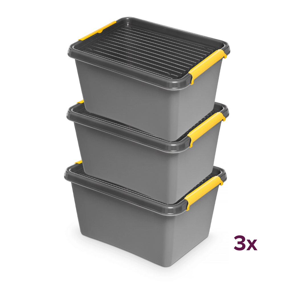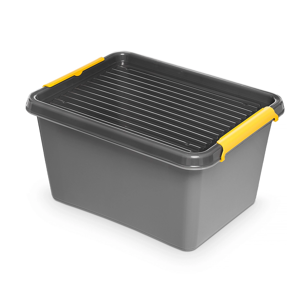 De grijze kleurstelling met opvallende gele clipsluiting geeft een moderne twist aan functionaliteit, terwijl het 'smoked' transparante grijze deksel inhoud zichtbaar maakt zonder aan stijl in te boeten. Maak je geen zorgen meer over rondslingerende gereedschappen of seizoensgebonden uitrusting met deze boxen van Orplast uit de SolidStore collectie; alles krijgt zijn eigen plek in deze stevige opbergbox. En met zijn stootvaste eigenschappen kun je ervan verzekerd zijn dat je bezittingen veilig blijven, zelfs als de box een keer zou vallen. Kortom, dit is dé opbergoplossing die stijl combineert met extreme functionaliteit. Of je nu een professional bent die orde wil scheppen in het magazijn of iemand die thuis extra opbergruimte nodig heeft; onze opbergbox voor heavy duty gebruik staat klaar om elke uitdaging aan te gaan!