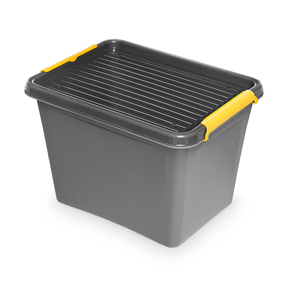 De grijze kleurstelling met opvallende gele clipsluiting geeft een moderne twist aan functionaliteit, terwijl het 'smoked' transparante grijze deksel inhoud zichtbaar maakt zonder aan stijl in te boeten. Maak je geen zorgen meer over rondslingerende gereedschappen of seizoensgebonden uitrusting met deze boxen van Orplast uit de SolidStore collectie; alles krijgt zijn eigen plek in deze stevige opbergbox. En met zijn stootvaste eigenschappen kun je ervan verzekerd zijn dat je bezittingen veilig blijven, zelfs als de box een keer zou vallen. Kortom, dit is dé opbergoplossing die stijl combineert met extreme functionaliteit. Of je nu een professional bent die orde wil scheppen in het magazijn of iemand die thuis extra opbergruimte nodig heeft; onze opbergbox voor heavy duty gebruik staat klaar om elke uitdaging aan te gaan!