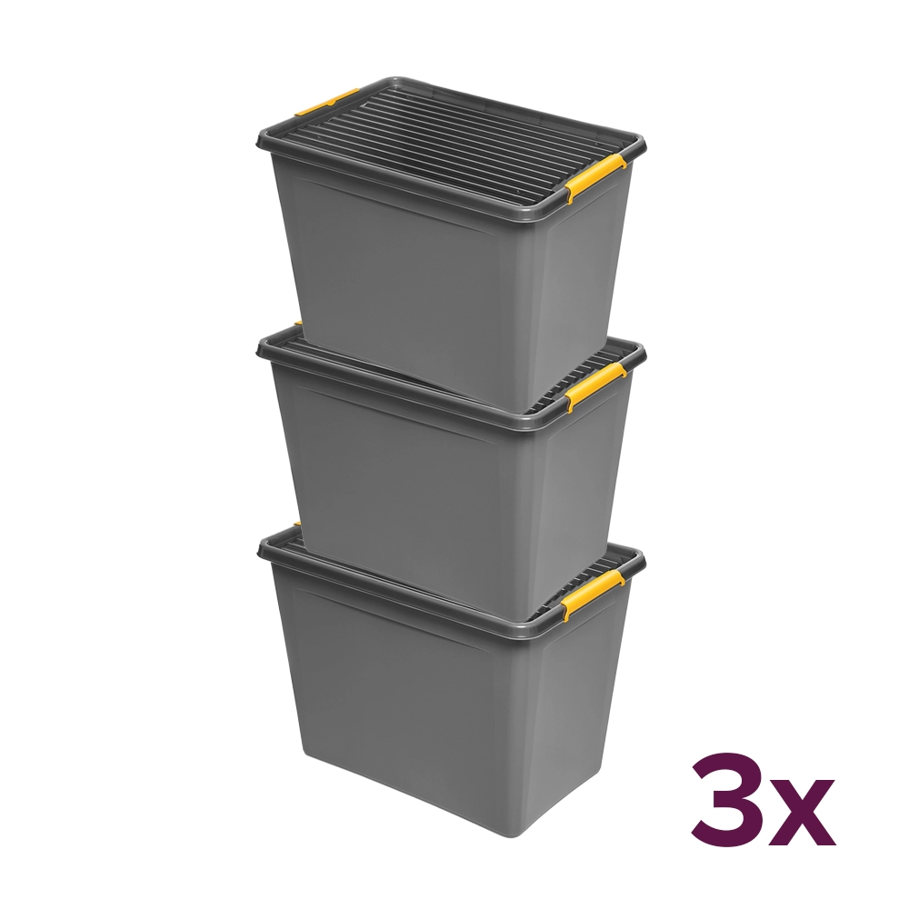 De grijze kleurstelling met opvallende gele clipsluiting geeft een moderne twist aan functionaliteit, terwijl het 'smoked' transparante grijze deksel inhoud zichtbaar maakt zonder aan stijl in te boeten. Maak je geen zorgen meer over rondslingerende gereedschappen of seizoensgebonden uitrusting met deze boxen van Orplast uit de SolidStore collectie; alles krijgt zijn eigen plek in deze stevige opbergbox. En met zijn stootvaste eigenschappen kun je ervan verzekerd zijn dat je bezittingen veilig blijven, zelfs als de box een keer zou vallen. Kortom, dit is dé opbergoplossing die stijl combineert met extreme functionaliteit. Of je nu een professional bent die orde wil scheppen in het magazijn of iemand die thuis extra opbergruimte nodig heeft; onze opbergbox voor heavy duty gebruik staat klaar om elke uitdaging aan te gaan!