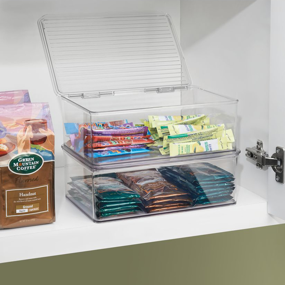 'Hoe organiseer ik mijn voorraadkast?', 'Wat is een handige opbergplek voor theezakjes?' en 'Hoe berg ik mijn scheerapparaat droog op in de badkamer?'. Allemaal vragen waar deze opbergbox met deksel een antwoord op heeft! Ze zijn werkelijk overal voor te gebruiken, en door de transparante kleur zie je in één oogopslag welke spulletjes er in liggen.