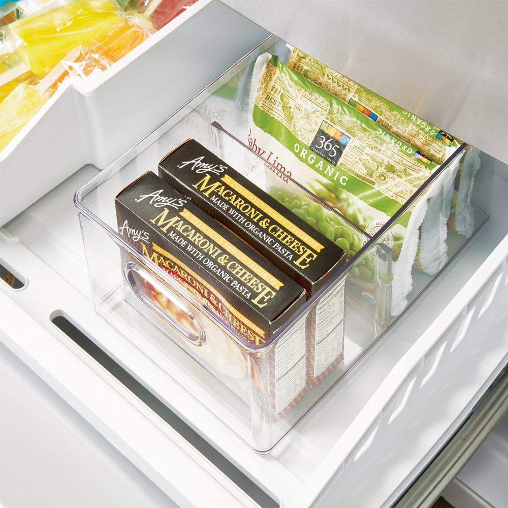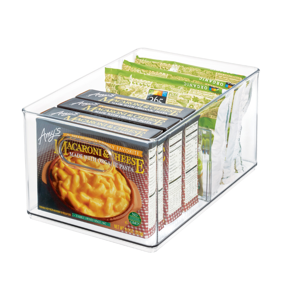 De opbergbak met vakken is gemaakt van duurzaam Resipreme-kunststof. Dit heldere materiaal is zeer stevig, en kun je in de koelkast of vriezer bewaren, maar is niet vaatwasserbestendig. De breedte van de opbergbox met vakken is 20,5 centimeter, de diepte 31 centimeter en de hoogte 15 centimeter. Net als veel van de andere producten van The Home Edit is deze opbergbox met vakken stapelbaar.
