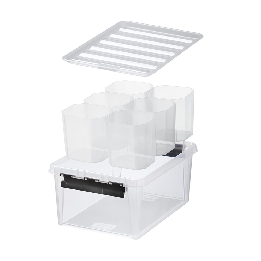 - Afmetingen 'opbergbox - 14 liter - 6 inzetbakjes': Breedte 30 cm, diepte 40 cm, hoogte 18 cm