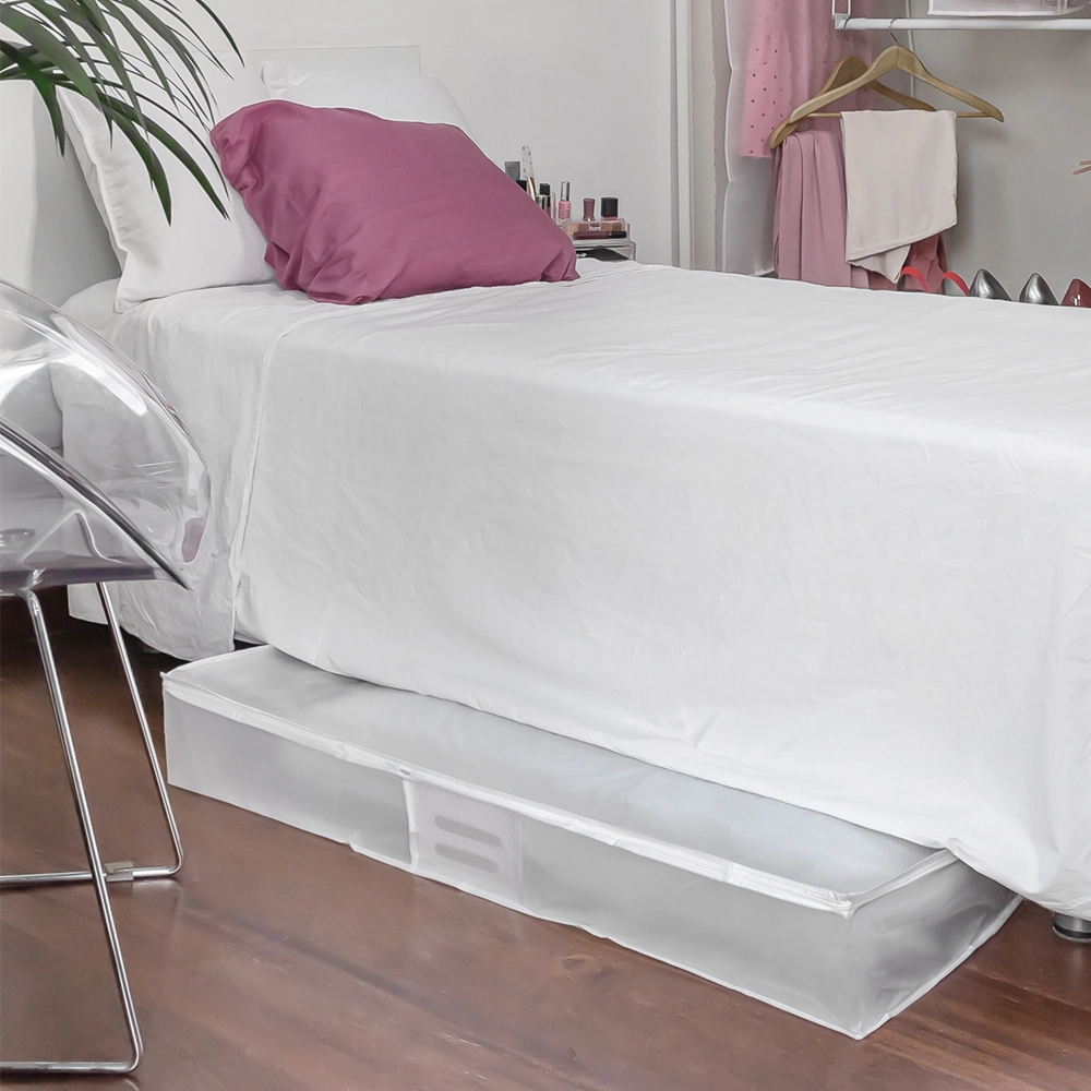 De opberghoes van Compactor is de perfecte oplossing voor het veilig en georganiseerd opbergen van je dekbedden, seizoensgebonden kleding en ander beddengoed. Gemaakt van PEVA-kunststof in een stijlvolle melkwitte transparante kleur, biedt deze hoes bescherming tegen stof en vocht, terwijl je eenvoudig kunt zien wat erin zit.