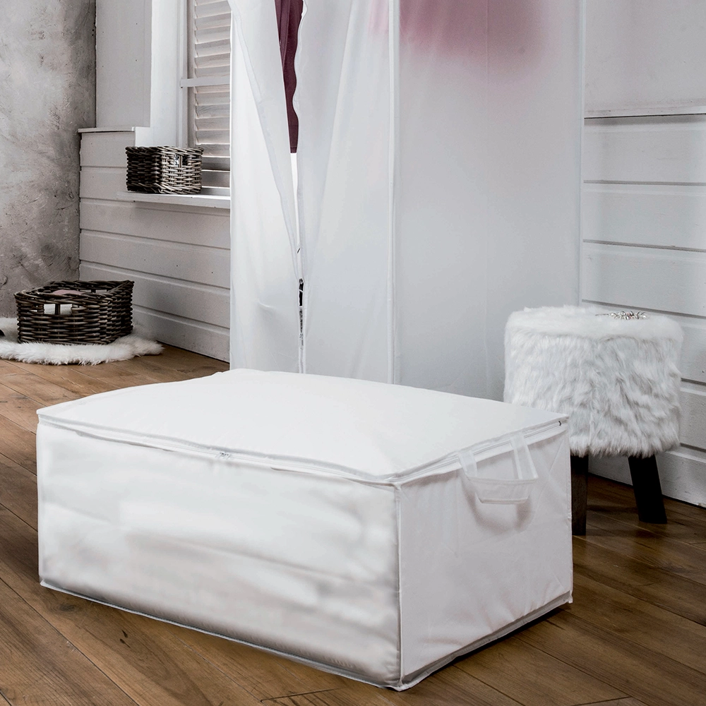 Verkrijgbaar in twee formaten, is deze opberghoes ideaal voor zowel kastopslag als onder-bed-opslag. Deze opberghoes is ontworpen voor veelzijdig gebruik. Het grote formaat van 70 cm breed, 50 cm diep en 30 cm hoog is perfect voor het opbergen van grote items en de hoes, terwijl de lage variant van 100 cm breed, 48 cm diep en 15 cm hoog speciaal is ontworpen voor onder-bed-opslag. Beide hoezen maken het eenvoudig om je beddengoed netjes en geordend te houden, zodat je ruimte bespaart en je spullen beschermd blijven.