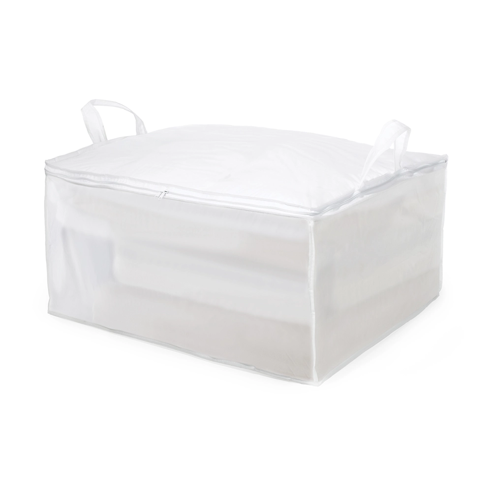 De opberghoes van Compactor is de perfecte oplossing voor het veilig en georganiseerd opbergen van je dekbedden, seizoensgebonden kleding en ander beddengoed. Gemaakt van PEVA-kunststof in een stijlvolle melkwitte transparante kleur, biedt deze hoes bescherming tegen stof en vocht, terwijl je eenvoudig kunt zien wat erin zit.