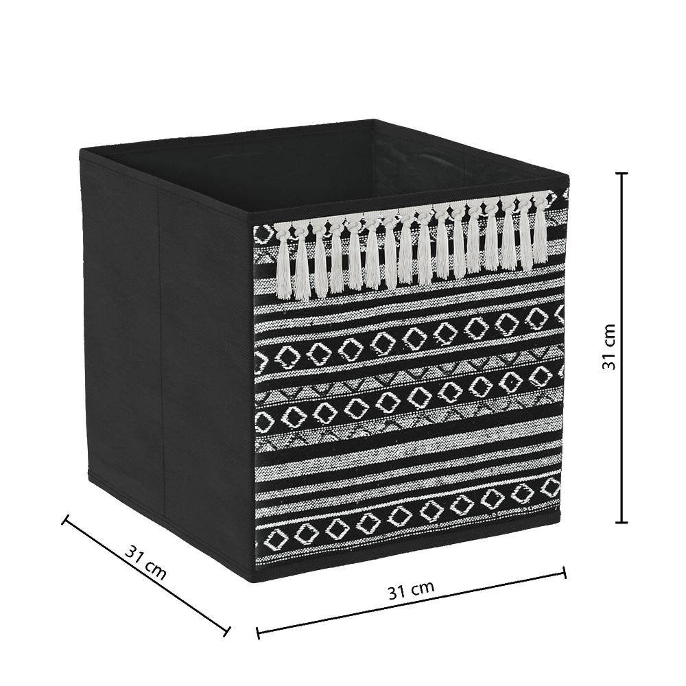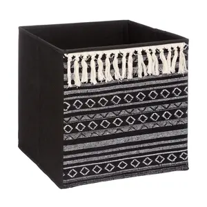 Opbergmand zwart met franje Five® - Zwart - Opvouwbaar