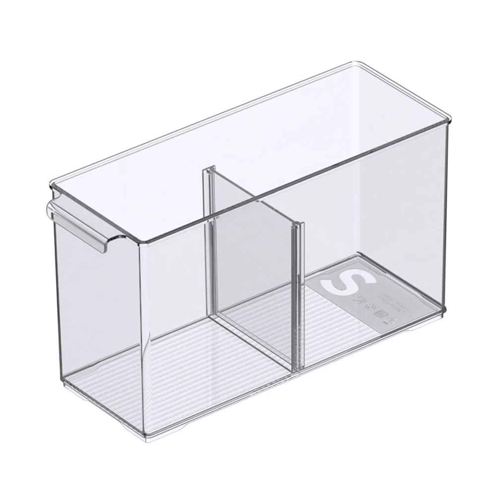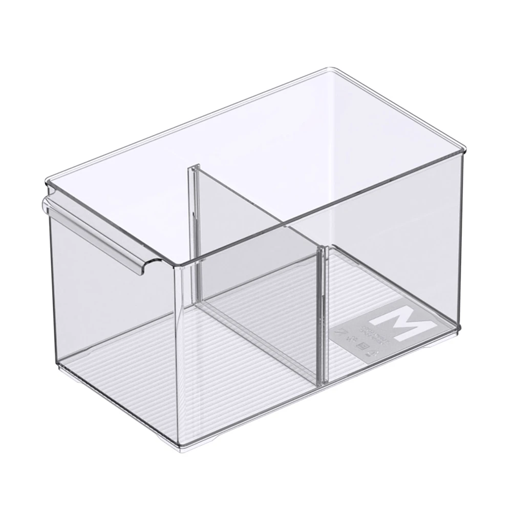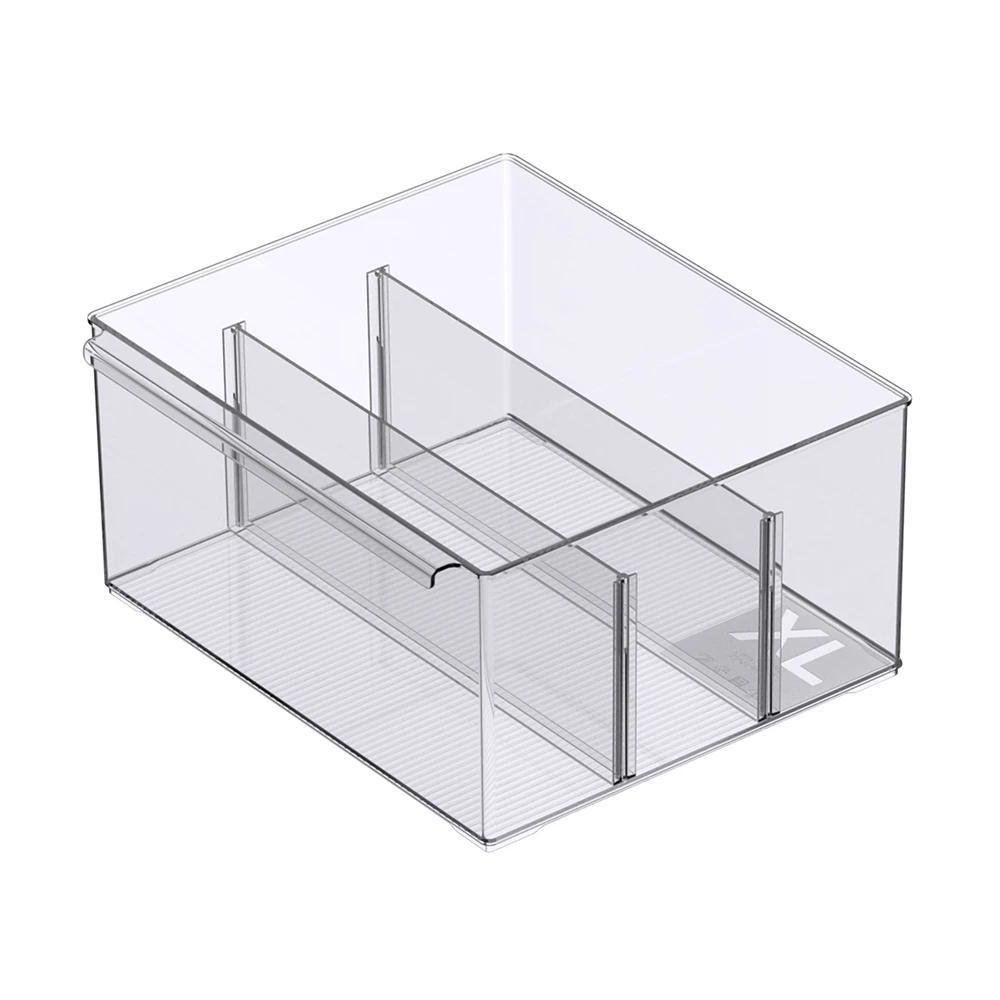 Een onmisbaar product voor ieder keukenkastje is dit handige opbergbakje met uitneembare verdeler. Dit is de smalste versie waar je bijvoorbeeld pakken rijst, potjes of andere smalle verpakte etenswaren in opbergt. In totaal is het 10 cm breed, 27 cm diep en 15 cm hoog. Het opbergbakje is voorzien van een handvat aan de voorzijde, heeft 1 uitneembare verdeler, is BPA-vrij en is gemaakt van hoogwaardig PET-kunststof. Dit opbergbakje zit standaard 2 keer in deze opbergset.
