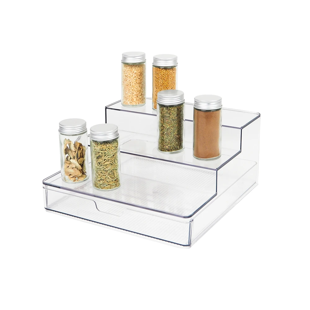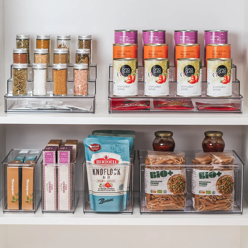 Deze must-have keukenkast organizer heeft 3 niveaus zodat je eenvoudig toegang hebt tot al je kruidenpotjes. De kruidentrap is daarnaast voorzien van een lade waarin je bijvoorbeeld kruidenzakjes opbergt. Gemaakt van recyclebaar PET-kunststof, is BPA-vrij, heeft anti-slip pootjes en is zeer helder transparant. Deze organizer zit standaard 1 keer in deze opbergset.