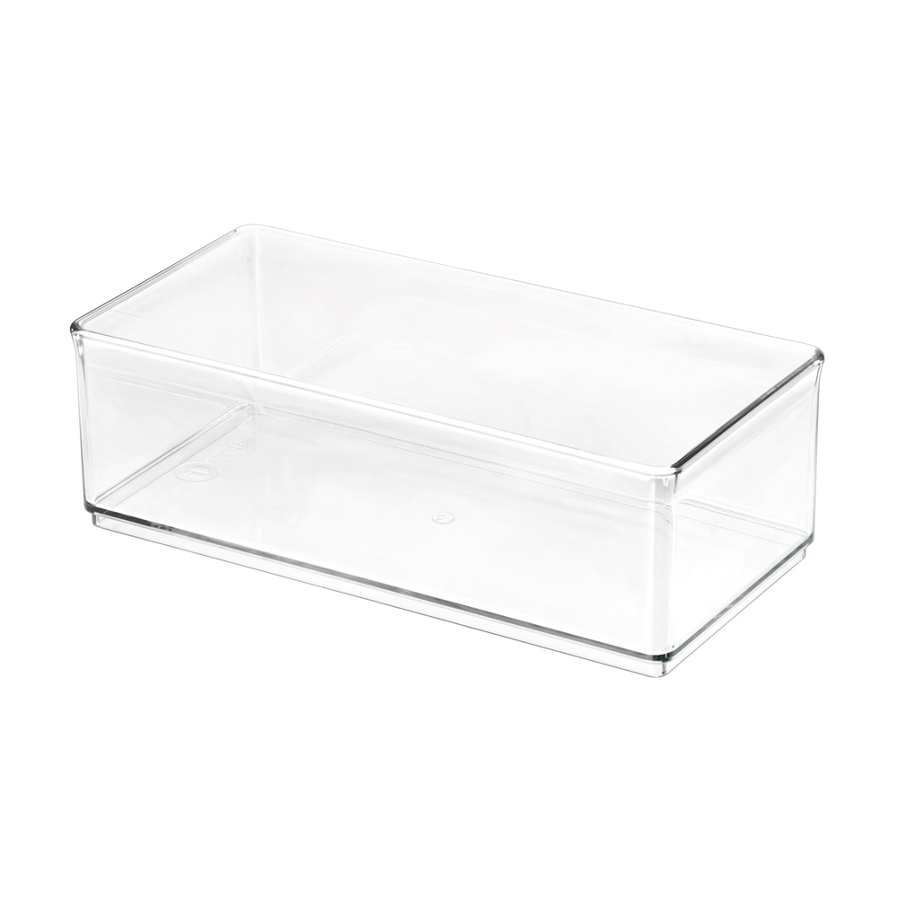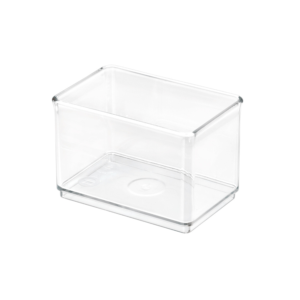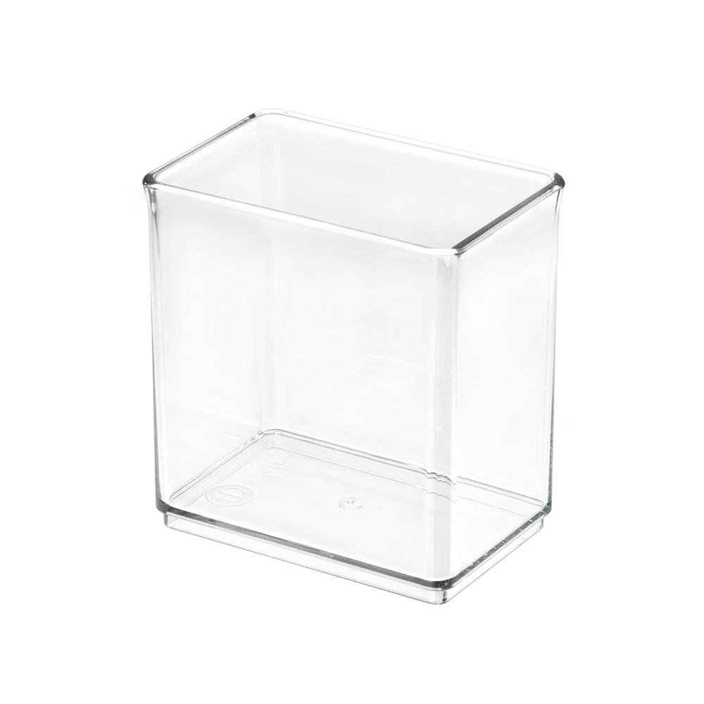 Dit stapelbare opbergbakje small is gemaakt van acryl en bruikbaar met of zonder verdeler erin. Dit bakje zit standaard 1 keer in deze opbergset. Ideaal voor het opbergen van kleine verzorgingsartikelen. Het bakje heeft de afmetingen 12 cm breed, 8 cm diep en 8,5 cm hoog.