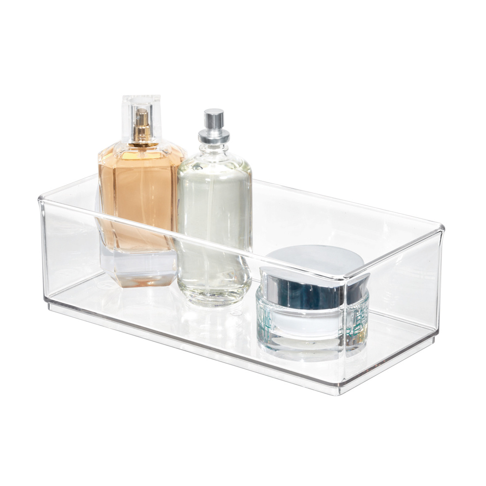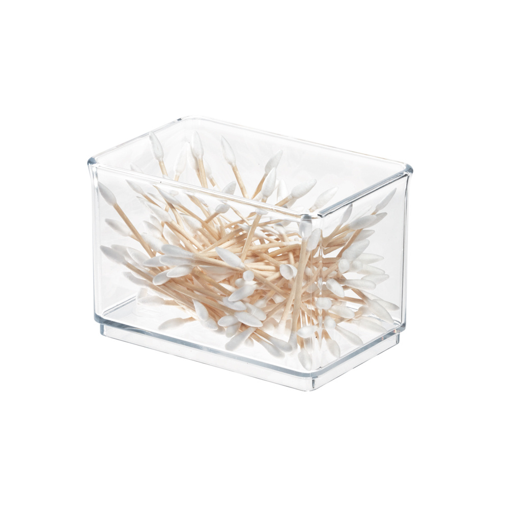 Dit stapelbare opbergbakje small is gemaakt van transparant acryl. Dit bakje is ideaal te gebruiken met of zonder verdelers en wordt in deze set gebruikt als inzetbakje in de opbergbox. Dit bakje zit standaard 3 keer in deze opbergset. Ideaal voor het opbergen van kleine verzorgingsartikelen. Het bakje heeft de afmetingen 12 cm breed, 8 cm diep en 8,5 cm hoog.