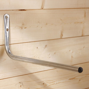 De wandhaak van Mottez is gemaakt van stevig zilverkleurig staal. De ophangschroeven/pluggen worden niet meegeleverd. Door de grote draagcapaciteit kun je aan de ophangbeugels (80 kg) prima autobanden ophangen.