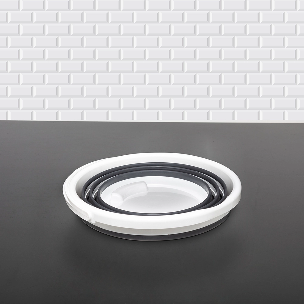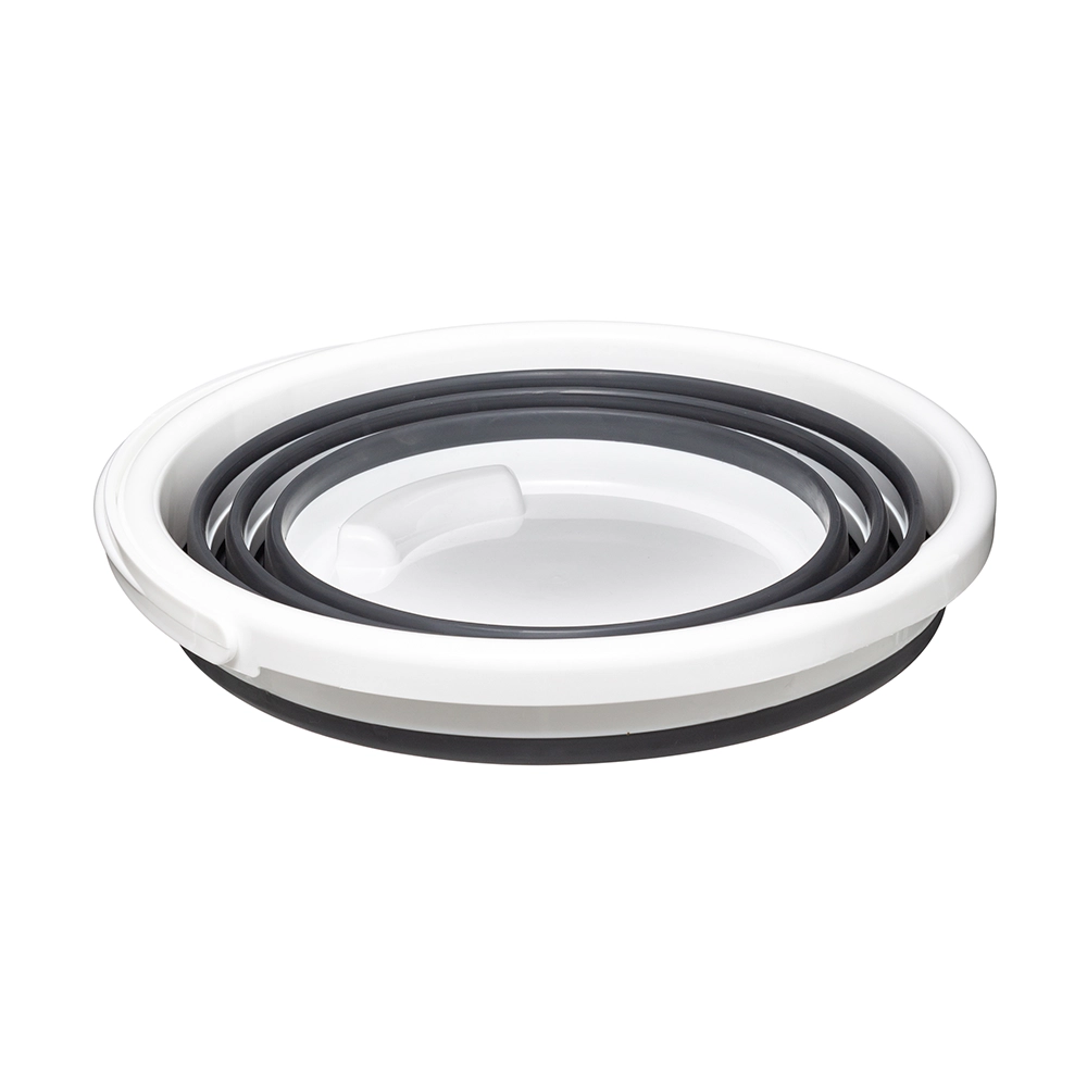 Ideaal voor schoonmaakklussen, kamperen, of andere huishoudelijke taken, deze emmer biedt veel functionaliteit met een inhoud van 10 liter. De opvouwbare emmer heeft een diameter van 32 cm en een hoogte van 24,5 cm wanneer deze volledig is uitgevouwen, en is slechts 5 cm hoog wanneer opgevouwen, waardoor hij gemakkelijk in kasten of zelfs in de kleinste ruimtes past. Het stevige handvat zorgt voor comfortabel dragen, terwijl de witte kleur en grijze flexibele cirkels het stijlvolle, moderne ontwerp compleet maken. De combinatie van polypropyleen (PP) en TPE/TPR-materiaal zorgt voor duurzaamheid en flexibiliteit, zodat de emmer bestand is tegen dagelijks gebruik.