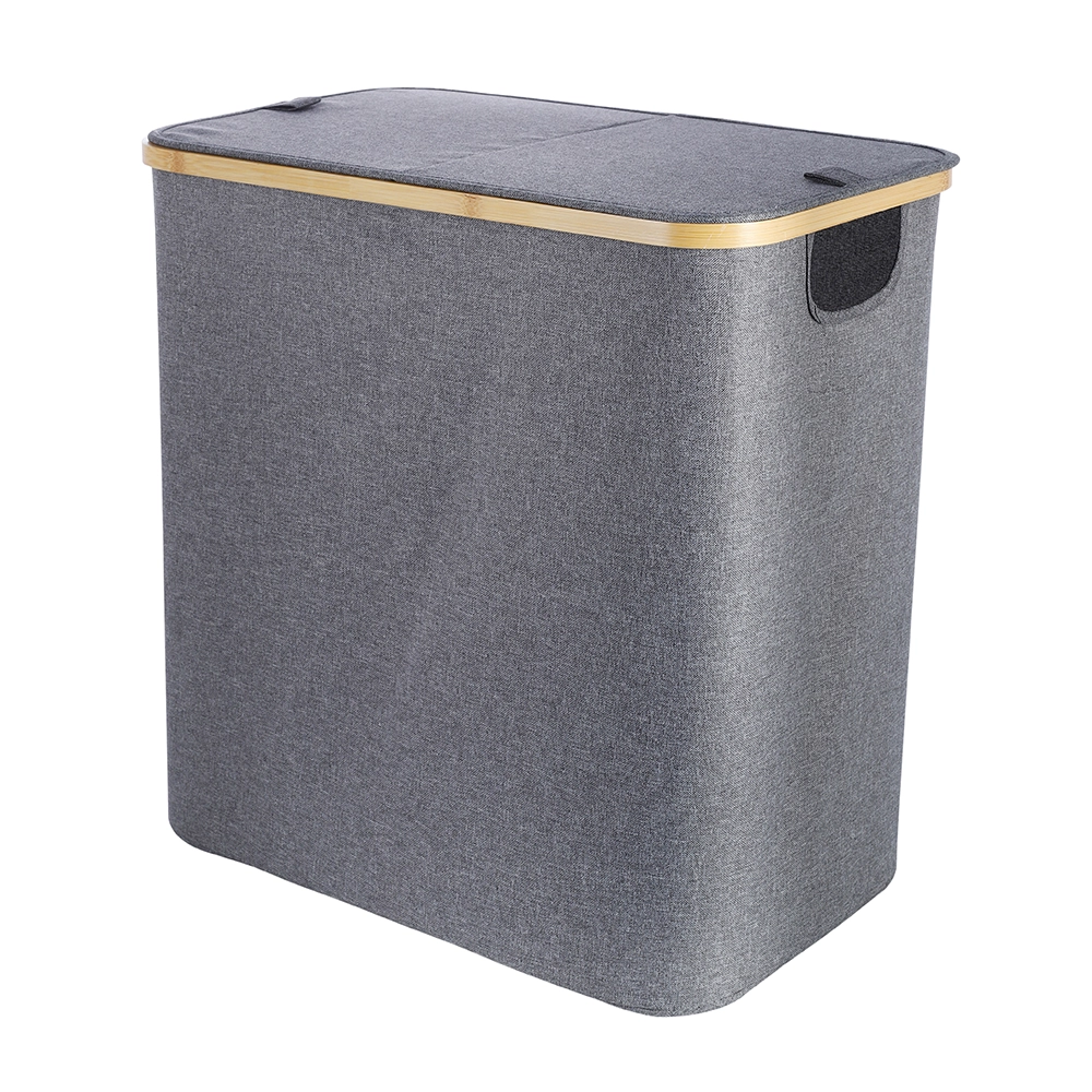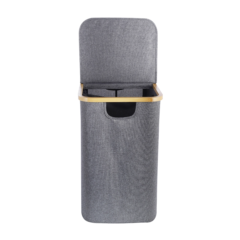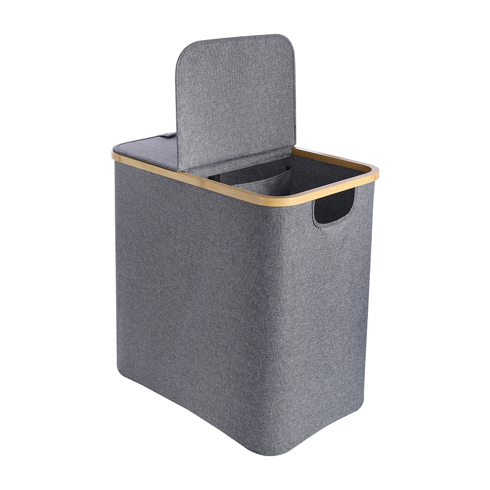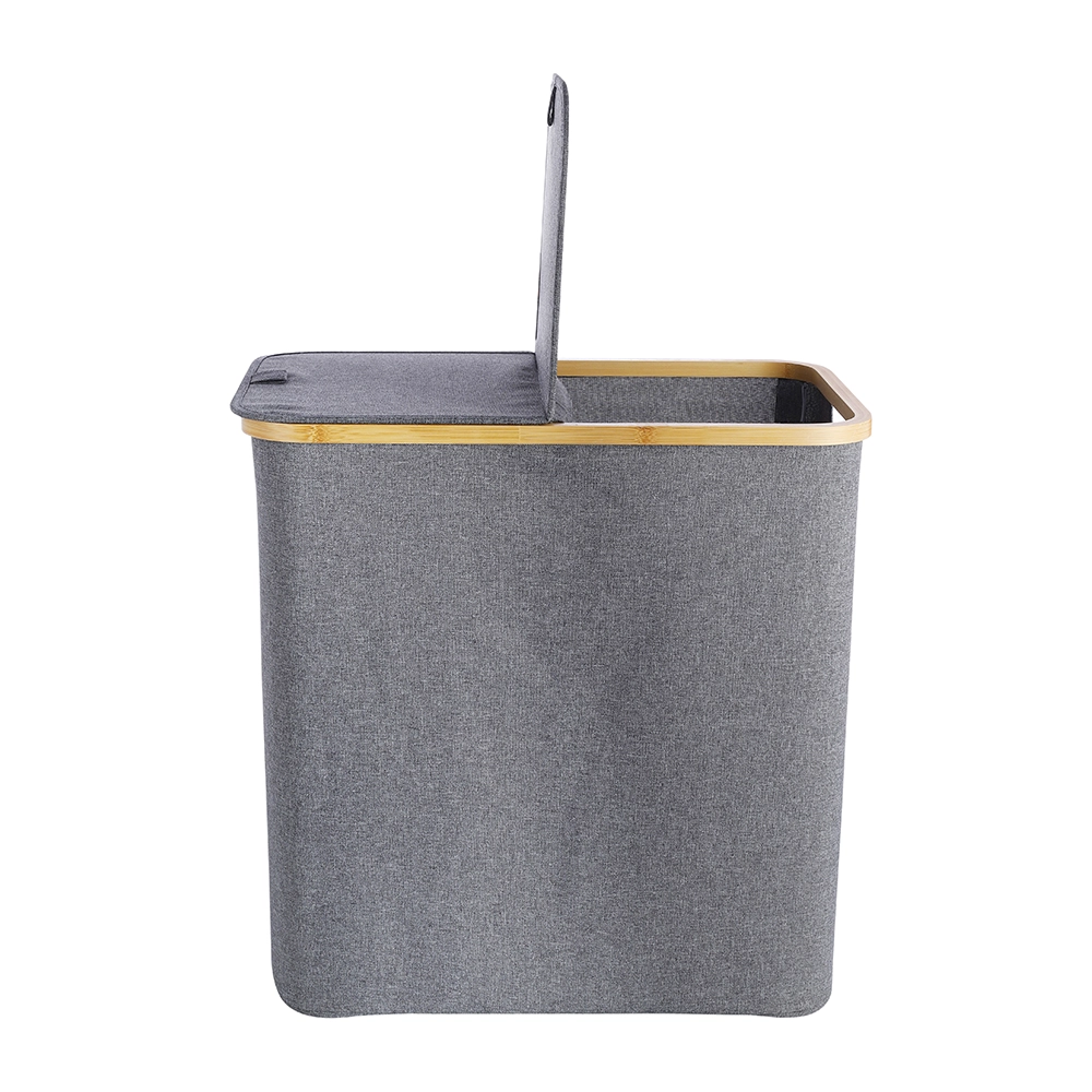De wasmand met 2 vakken is opvouwbaar, waardoor je hem gemakkelijk kunt opbergen wanneer hij niet in gebruik is. De geïntegreerde handvatten maken de wasmand makkelijk te verplaatsen, zelfs als hij vol is. De interne waterbestendige stof beschermt de wasmand tegen vocht, terwijl het deksel helpt om je wasgoed netjes uit het zicht te houden. Deze opvouwbare wasmand is licht van gewicht en eenvoudig mee te nemen, wat het een praktische toevoeging maakt aan elke badkamer of wasruimte.
