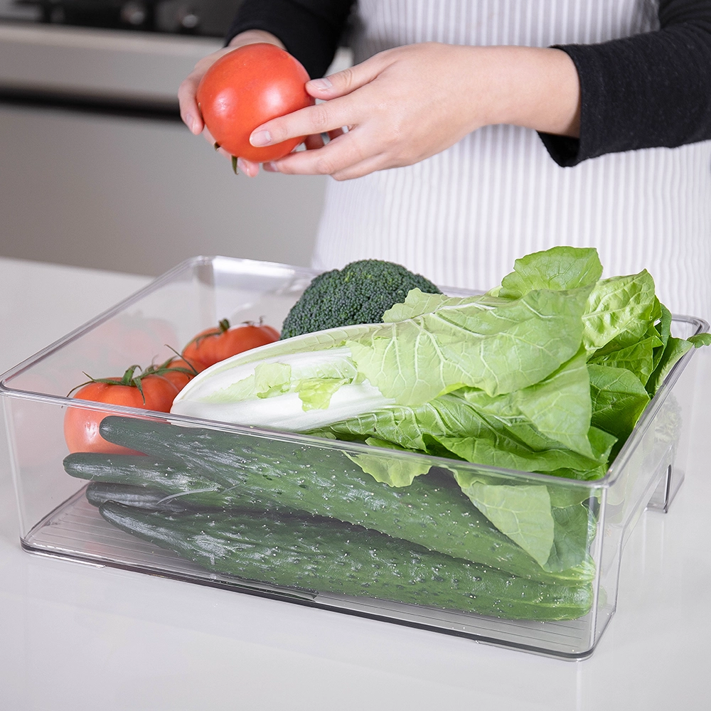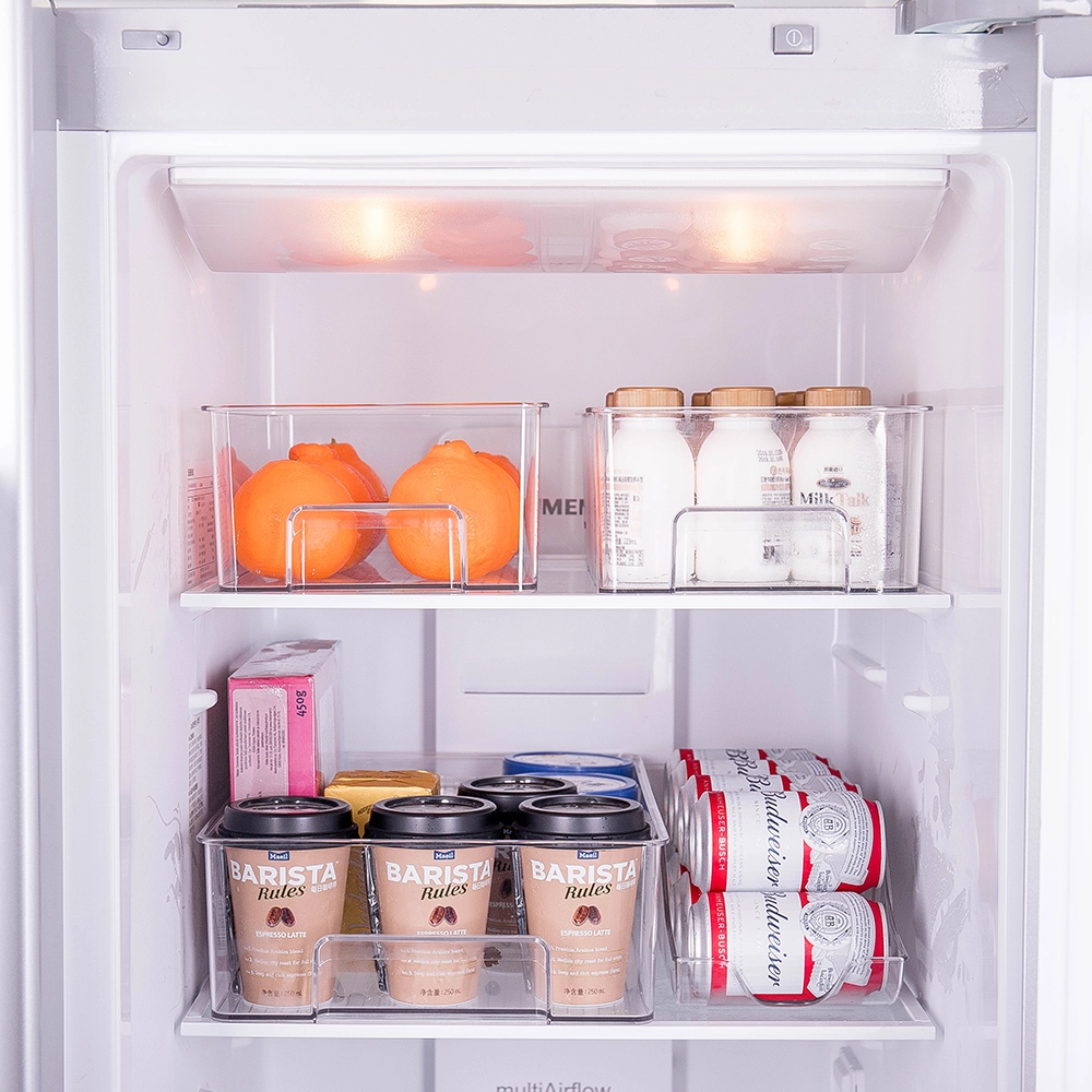 Hoogwaardige koelkast organizer voor het bewaren van etenswaren in je koelkast. Het handige handvat zorgt voor moeiteloze toegang, zonder dat je de hele inhoud van je koelkast hoeft te verplaatsen.