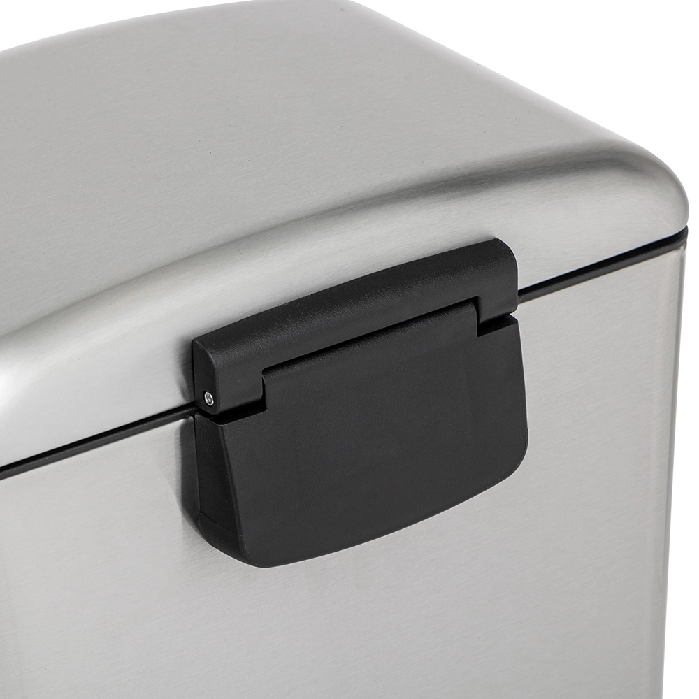 Met een capaciteit van 20 liter is deze pedaalemmer groot genoeg voor dagelijks gebruik, terwijl hij compact genoeg blijft om gemakkelijk in kleinere ruimtes te passen. De pedaalemmer van 20 liter is uitgerust met een 'drop-brake' systeem, wat zorgt voor een zachte en stille sluiting van het deksel. Dit voorkomt harde klappen bij het dichtdoen. De pedaalemmer is gemaakt van hoogwaardig roestvrij staal, verkrijgbaar in een zilverkleurige uitvoering of mat zwart, wat niet alleen duurzaamheid biedt maar ook een stijlvolle uitstraling aan je interieur geeft. De verwijderbare binnenemmer maakt het legen en schoonmaken van de prullenbak eenvoudig en efficiënt. Met een gewicht van slechts 3 kg en afmetingen van 30 cm breed, 29,5 cm diep en 53,3 cm hoog, is deze pedaalemmer gemakkelijk te verplaatsen en te hanteren. De hoge kwaliteit van de materialen en de zorgvuldige afwerking maken deze pedaalemmer een duurzame keuze voor elk huishouden.