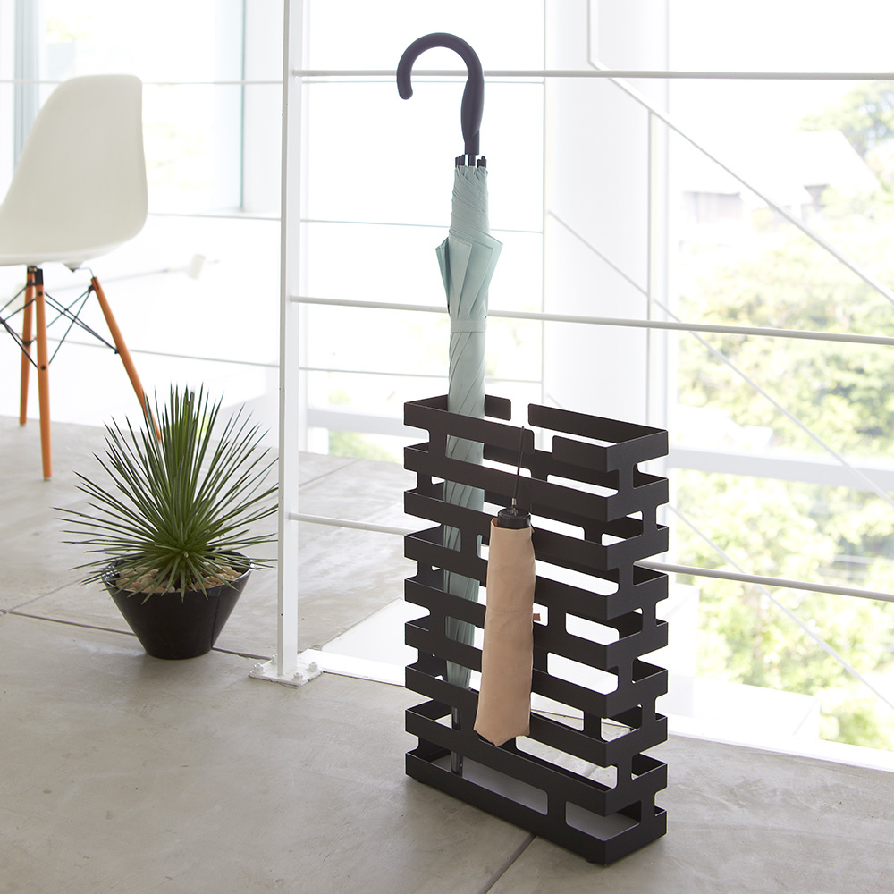 Rechthoekige metalen paraplubak zwart Yamazaki