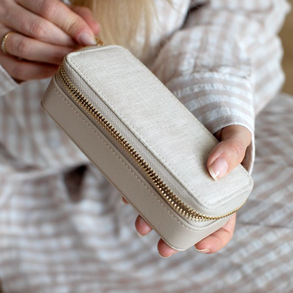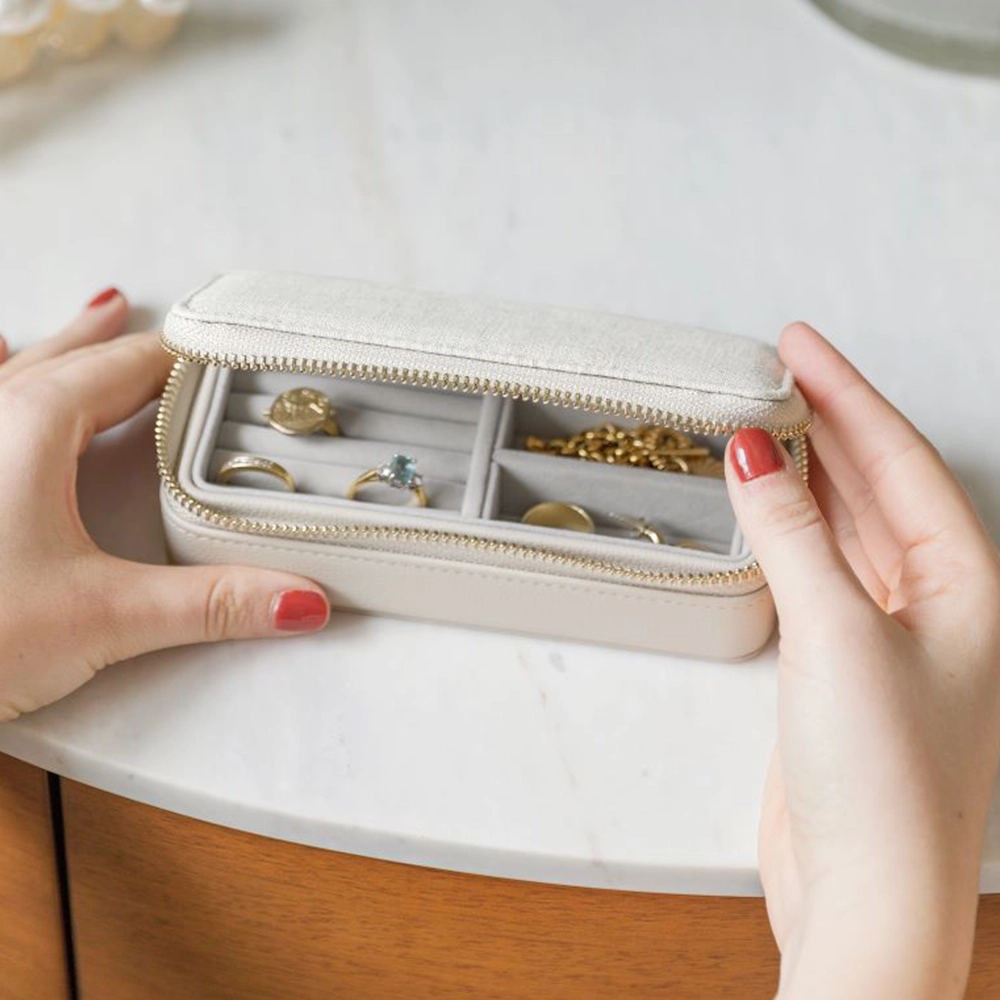 Ontdek het reisaccessoire waarvan je nooit wist dat je het nodig had: het reisetui voor sieraden met ringenhouder, oorbellenhouder en twee vakjes. Deze medium travel jewellery box is speciaal ontworpen voor reizigers die hun favoriete sieraden veilig willen opbergen tijdens weekendjes weg of vakanties in het buitenland.