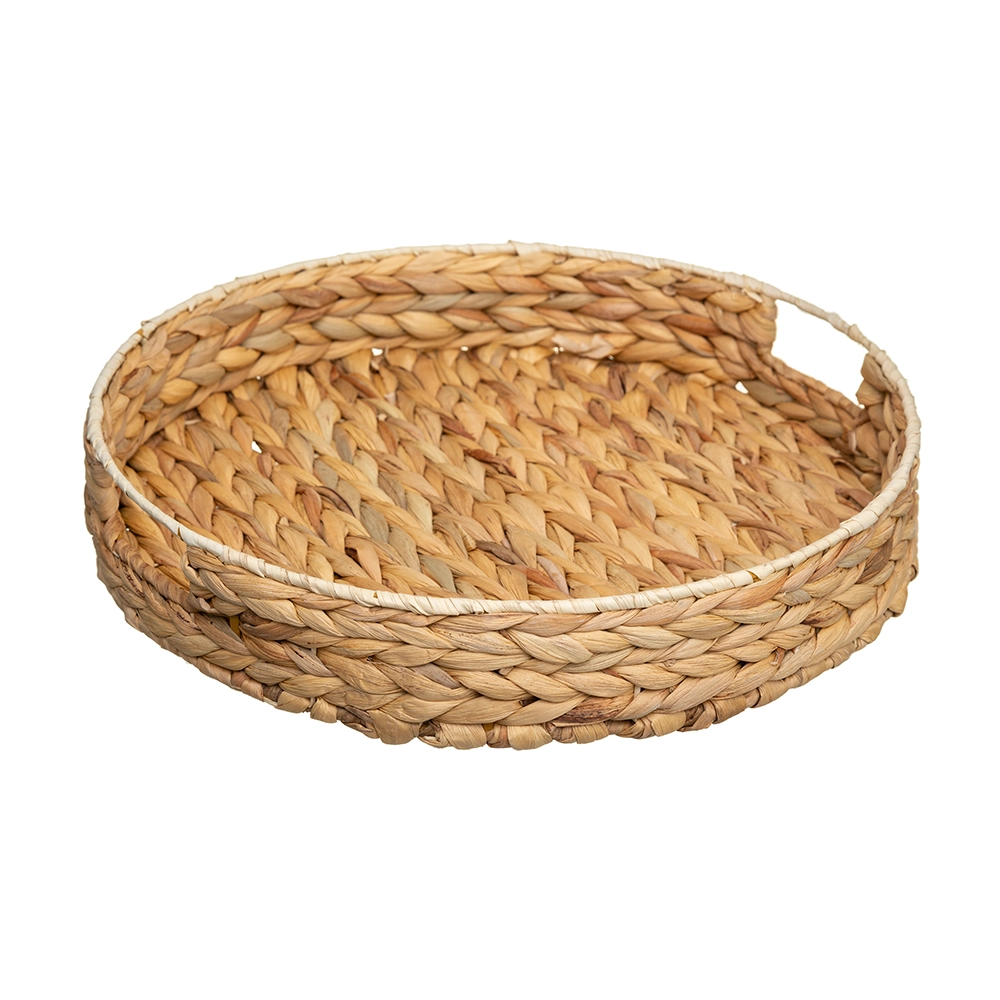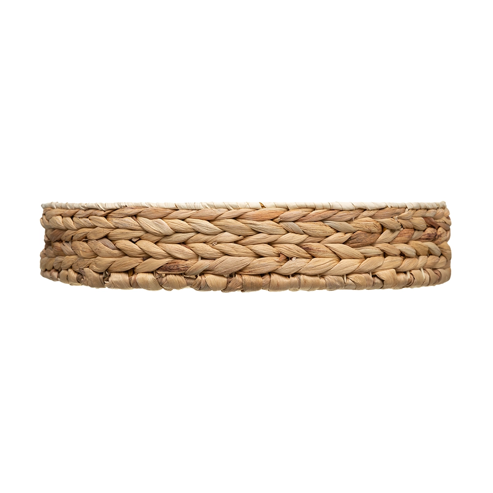 Dit ronde dienblad van hyacinth biedt de perfecte combinatie van stijl en functionaliteit. Met een stevig metalen frame dat is omhuld met gevlochten hyacinth, straalt dit dienblad een natuurlijke charme uit die in elk interieur past.