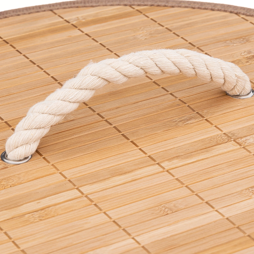 Ben je op zoek naar een praktische en stijlvolle oplossing om je vuile was netjes op te bergen? Dan is deze ronde bamboe wasmand precies wat je nodig hebt!
