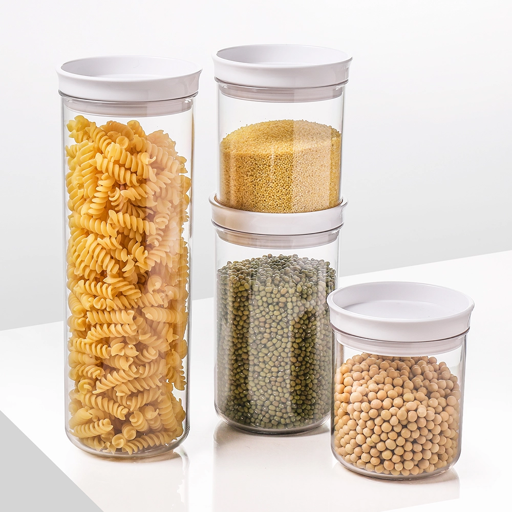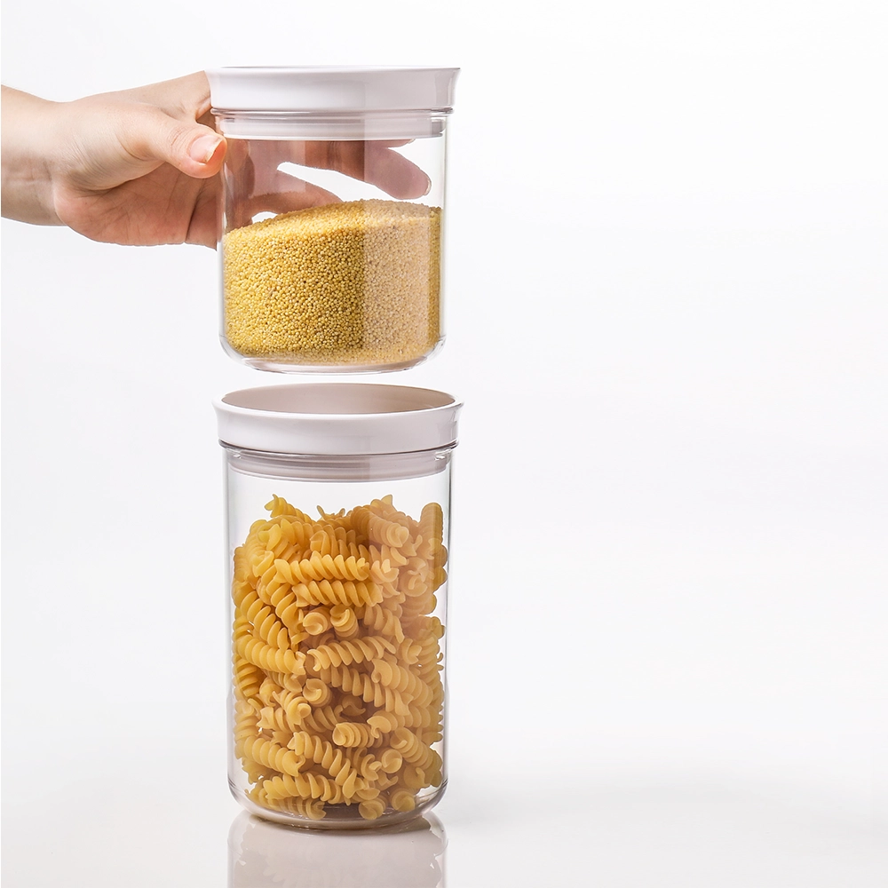 Met deze ronde voorraadbussen creëer je een georganiseerde en efficiënte keuken. De luchtdichte afsluiting houdt voedsel niet alleen vers, maar helpt ook voedselverspilling tegen te gaan. Dankzij hun stapelbare ontwerp besparen ze ruimte in je voorraadkast en maken ze koken overzichtelijker en plezieriger.