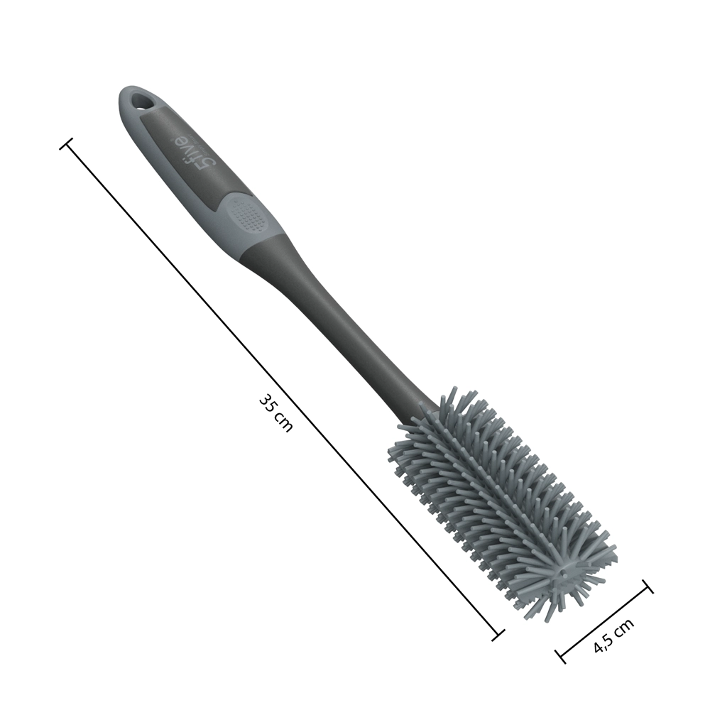 De rubberen haren en de handige schraper aan beide kanten zorgen ervoor dat vuil en melkresten moeiteloos worden verwijderd zonder de fles te beschadigen. De flessenborstel heeft een totale lengte van 35 cm, waardoor hij perfect is voor het reinigen van lange flessen. De rubberen tandjes op de kop van de borstel maken het gemakkelijk om hardnekkige resten van de bodem van de fles te schrapen, waardoor deze borstel ideaal is voor het schoonmaken van bijvoorbeeld babyflessen en glazen drinkflessen.