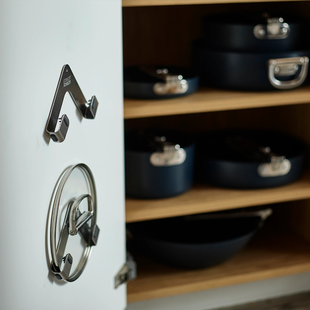 De rvs dekselhouder van Joseph Joseph is dé oplossing voor het efficiënt opbergen van pannendeksels. Deze set van twee RVS houders is speciaal ontworpen met ruimtebesparing in gedachten en helpt je keukenkastjes en lades netjes te houden.