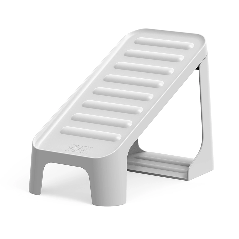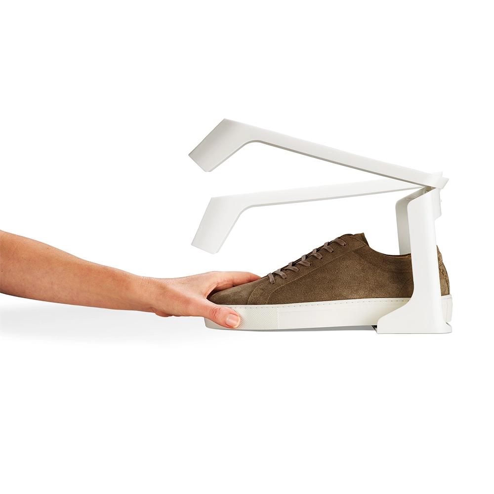De schoenen stapelaar van Joseph Joseph is een slimme en ruimtebesparende oplossing voor het netjes en georganiseerd houden van je schoenen. Dankzij het innovatieve, getrapte ontwerp kun je twee lage schoenen op elkaar stapelen zonder dat ze elkaar beschadigen of vervormen. Ideaal voor gebruik in kledingkasten, halmeubels of opbergkasten waar elke centimeter telt.