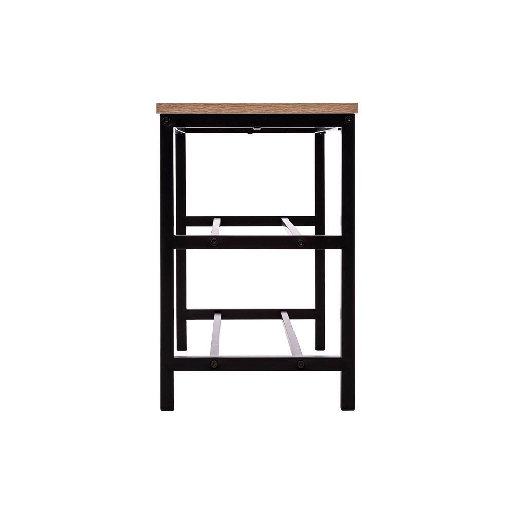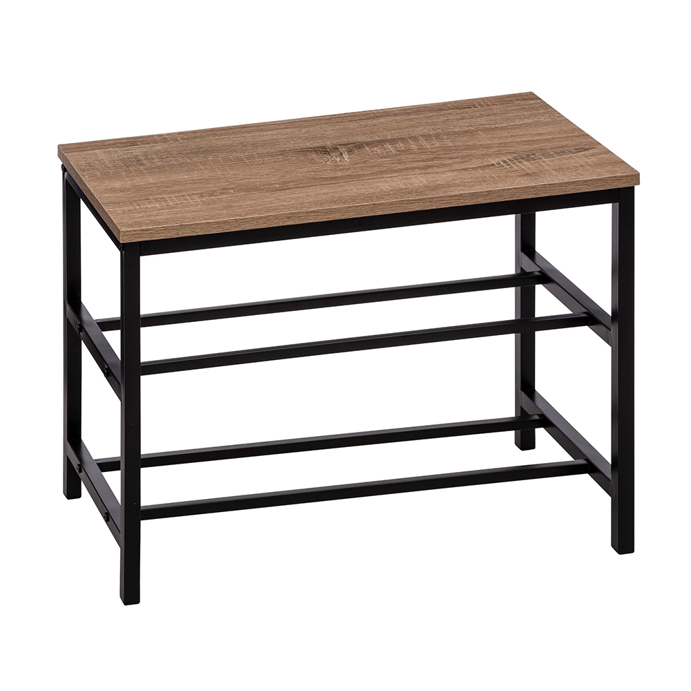 Het ontwerp van het schoenenrek biedt ruimte aan maar liefst 6 paar schoenen verdeeld over twee niveaus. Elke rij herbergt gemakkelijk 3 paar, wat zorgt voor orde en overzicht in je entree. Met afmetingen van 63 cm breed, 30 cm diep en 45 cm hoog is dit bankje compact genoeg om niet in de weg te staan, maar ruim genoeg om essentiële opslag te bieden. Gemaakt van een robuuste stalen constructie en bekroond met een warm houten zitvlak, nodigt ons schoenenbankje je uit om lekker te kunnen zitten terwijl je schoenen aantrekt of uittrekt.