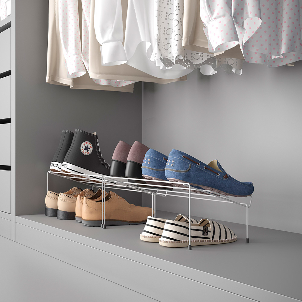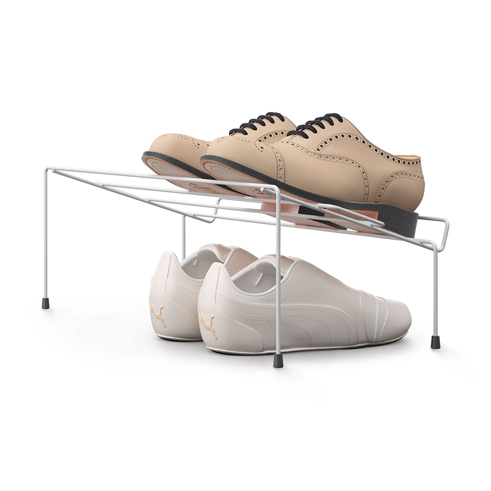 Dit schoenenrekje van Metaltex is ideaal te gebruiken in een kast in de hal, slaapkamer of bijkeuken. Daarnaast kan je de schoenen organizer buiten de kast zetten in je slaapkamer of hal. De anti-slip pootjes zorgen dat het rek niet verplaatst. Deze schoenenhouder is gemakkelijk te gebruiken voor het hele gezin. Deze set bevat 2 stuks schoenenrekjes. Per rekje kan je 2 paar schoenen kwijt op de organizer en 2 paar schoenen onder de organizer.