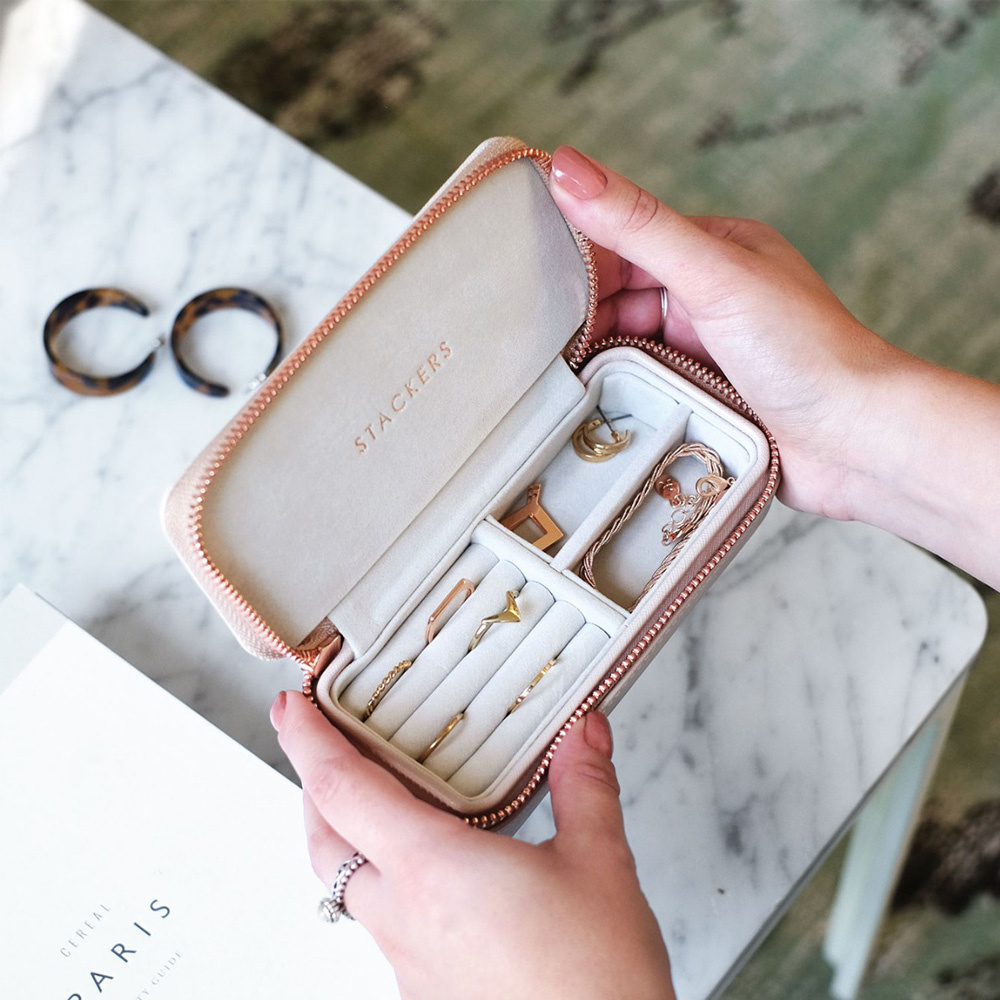 Medium sieradenetui van Stackers, verkrijgbaar in drie kleuren. Handig voor het opbergen van sieraden tijdens een vakantie of een weekendje weg.